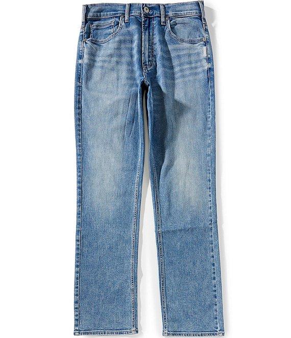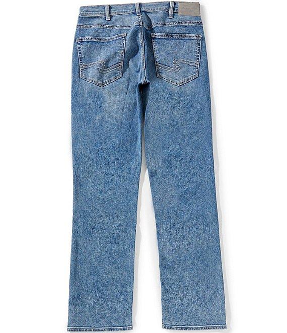 From Silver Jeans Co., these jeans feature: Mid rise Classic fit that's designed for those who prefer a bit more room Sits at the waist Zip/button front closure Belt loops 5-pocket jeans 2 front pockets (1 with coin pocket) 2 back pockets Longer saddle that offers extra ease Relaxed fit through the hips and thighs ensures all-day comfort Full length Straight legs Mid-stretch denim with the comfort of knit Knit flex denim fabric redefines comfort, combining the authentic character of mid-stretch denim with the softness and flexibility of knit Cotton/recycled polyester/polyester/viscose/elastane denim Machine wash/tumble dry Imported.