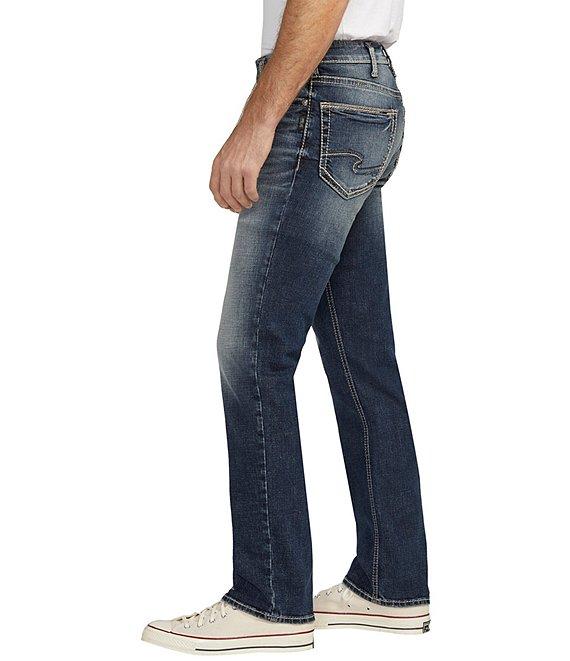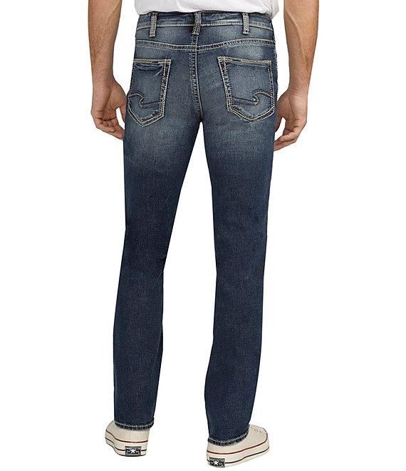 From Silver Jeans Co., this jean features: Medium indigo wash Sits at the waist with a classic hip and thigh Straight leg Belt loops 5-pocket styling Classic fit through hip and thigh Zippered fly with button closure Approx. 17" leg opening Cotton/recycled polyester/recycled cotton/elastane Machine wash/tumble dry Imported.