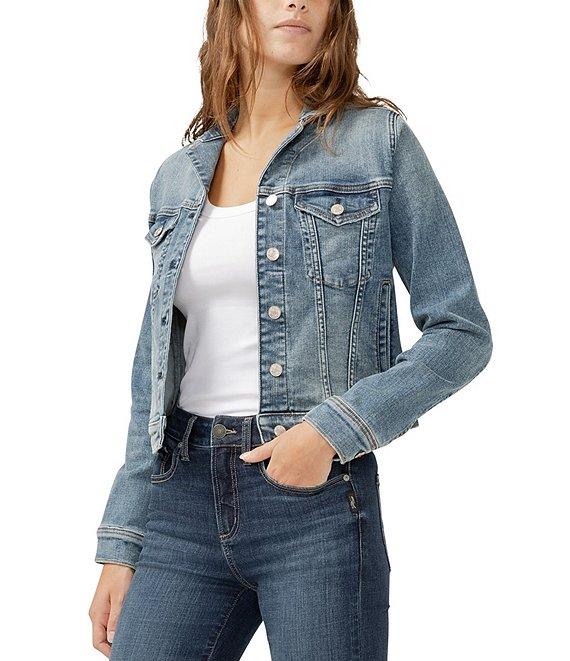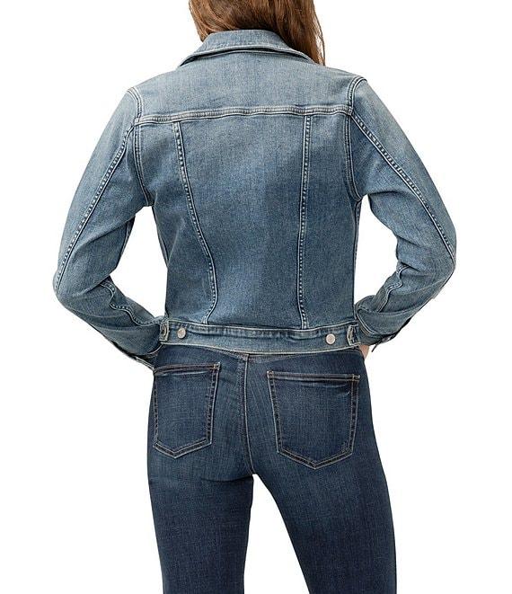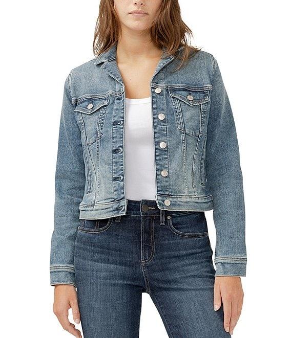 From Silver Jeans Co., this jacket features: Notched collar Long sleeves Button-front closure Two flap chest pockets Two welt pockets Signature details Cropped silhouette that’s modern and flattering Power Stretch denim with the highest level of stretch, great flexibility, shape retention and softness Cotton/polyester/elasterell/polyester/elastane Machine wash/tumble dry Imported.