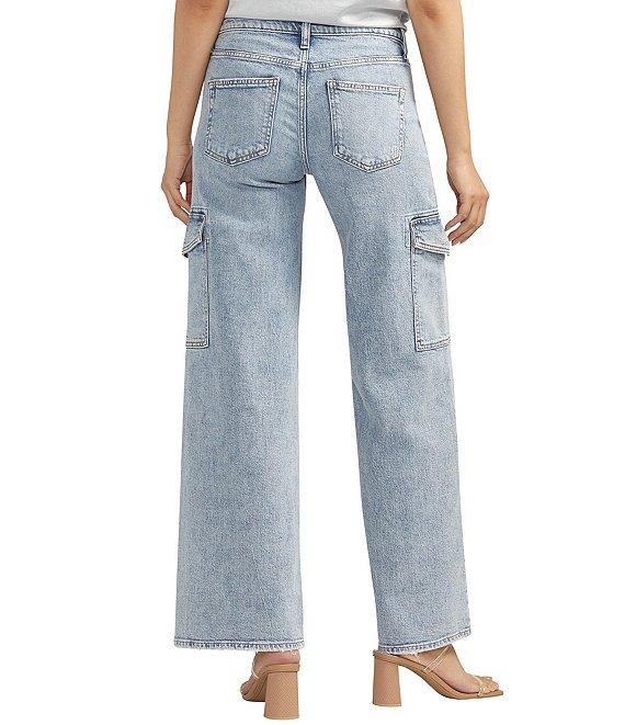 Silver Jeans Co. Suki Mid Rise Low Stretch Curvy-Fit Wide-Leg Cargo Jeans