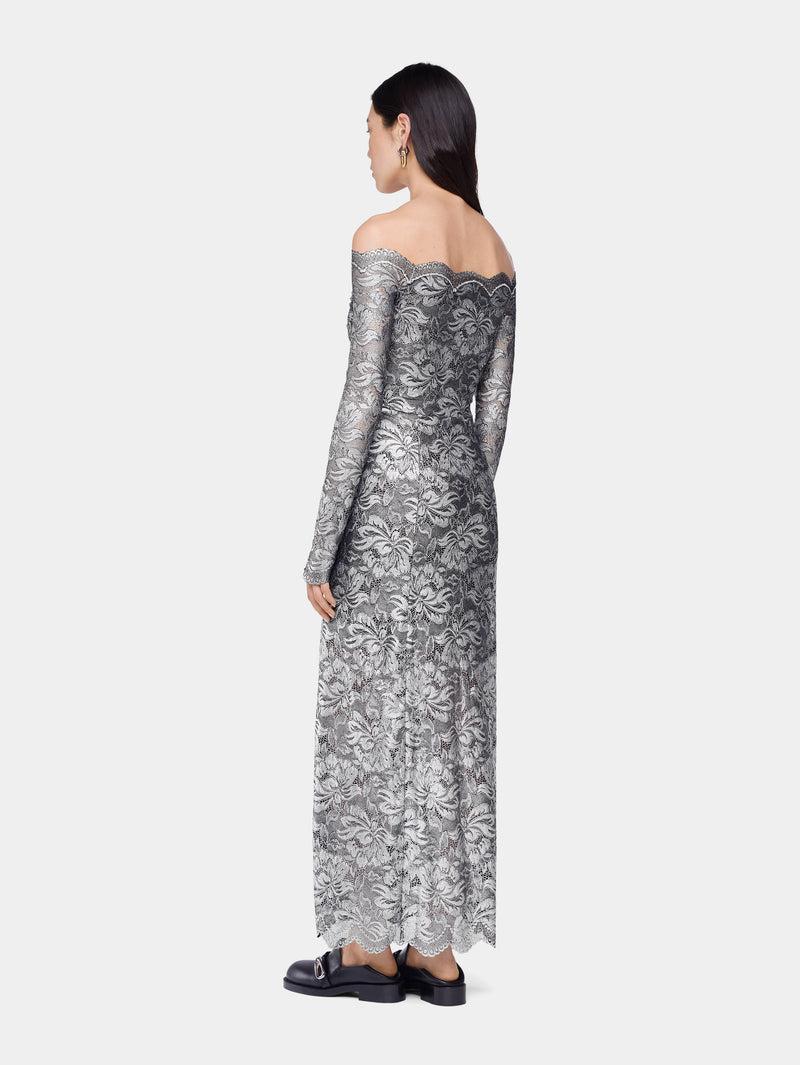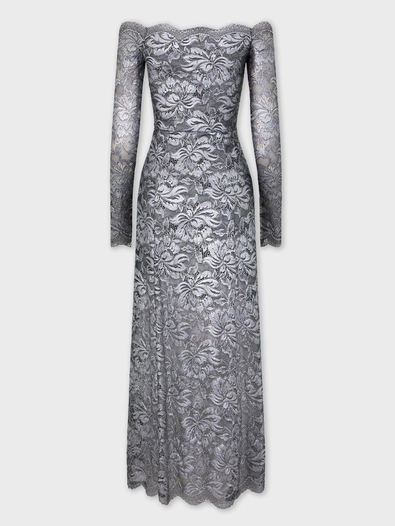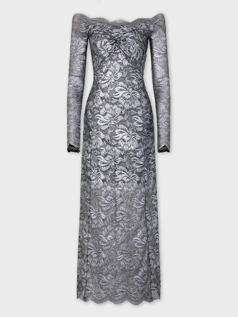 SILVER LONG DRESS IN LACE