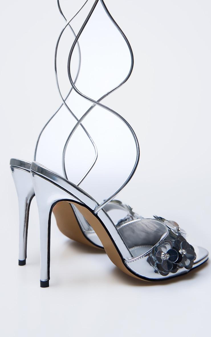 When your weekend look is in need of the perfect finishing touch, we've got you covered with these silver PU round toe sequin flower lace up heeled sandals. Brought to you in a silver PU material with a round toe design, sequin flower detailing and a lace up fastening, what more could you want? Just add these silver heels to a statement outfit to elevate the look. PU Tie-up 5inch Heel p]:!mb-0inch>Category: FootwearProduct type: Heeled SandalsColor: SilverOccasion: Evening