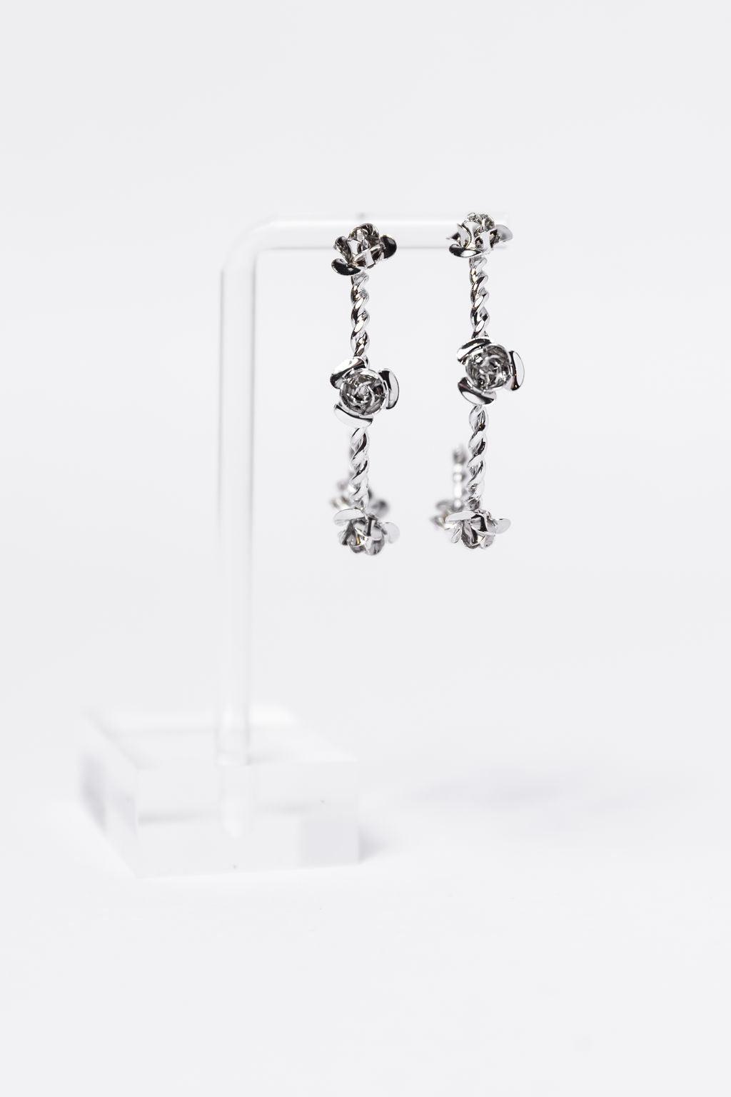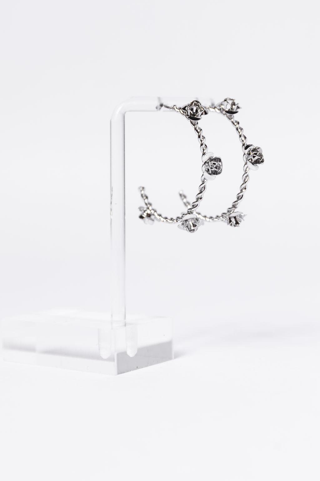 Details Silver Rose Hoop Earrings Stud post Material and Care Man made materials item only Materials may have natural variations Colors may vary from different viewing devices