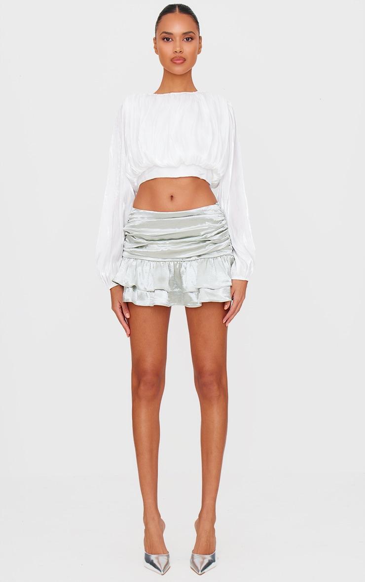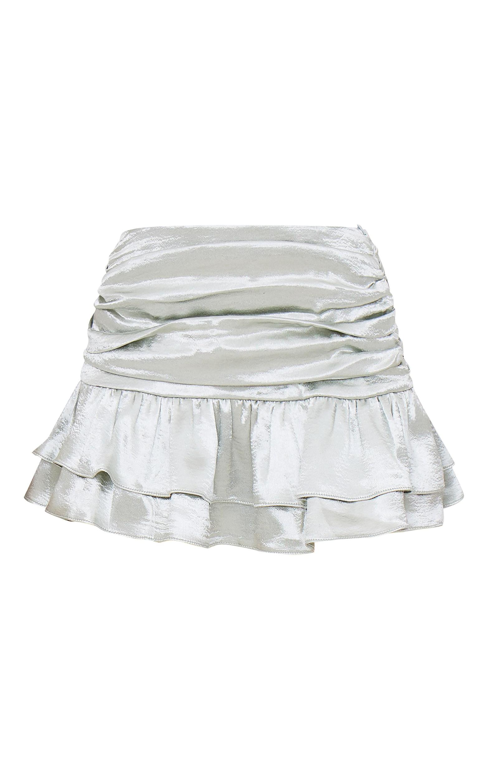 Make a statement this season with this silver satin frilly hem drop waist mini skirt. Brought to you in a silver hue satin material with a frilly hem design and drop waist detail, this mini skirt is all the new you need. Style with a white top, slip on heels and simple accessories for a chic finish everyone will be asking about. Length approx 33cm/13inch (Based on a sample size UK 8) Model wears size UK 8/ EU 36/ AUS 8/ US 4Model Height - 5ft 9inchp]:!mb-0inch>Category: BottomsProduct type: Mini SkirtColor: SilverMaterial: SatinOccasion: Evening