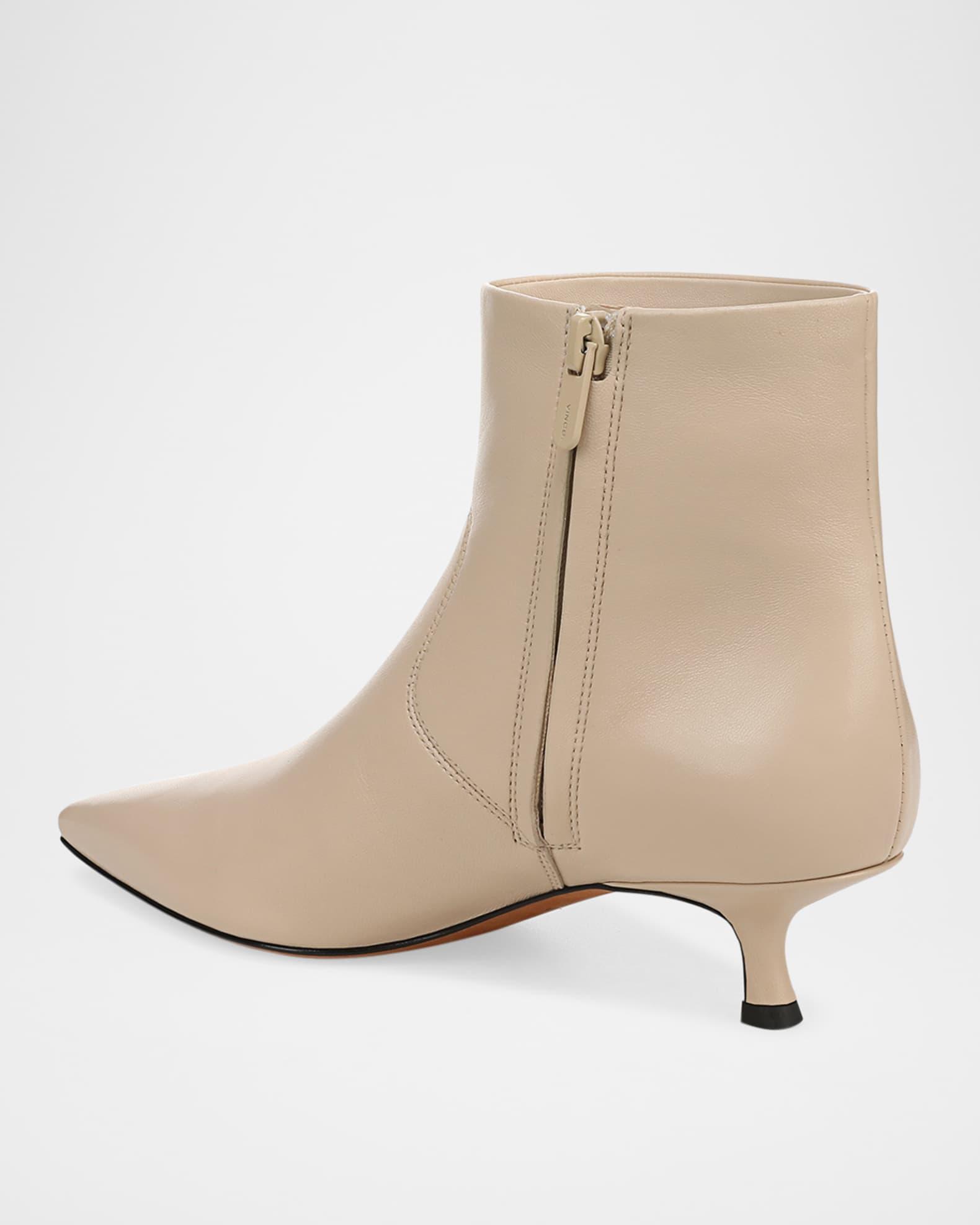 Vince "Simone" versatile leather ankle boots 1.75 in / 45 mm architectural kitten heel Boot shaft, approx. 5.1"H Pointed toe Side zip eases dress Leather outsole Lining: Leather Spot clean Imported Shipping Direct from Vendor, usually ships within 7 business days.