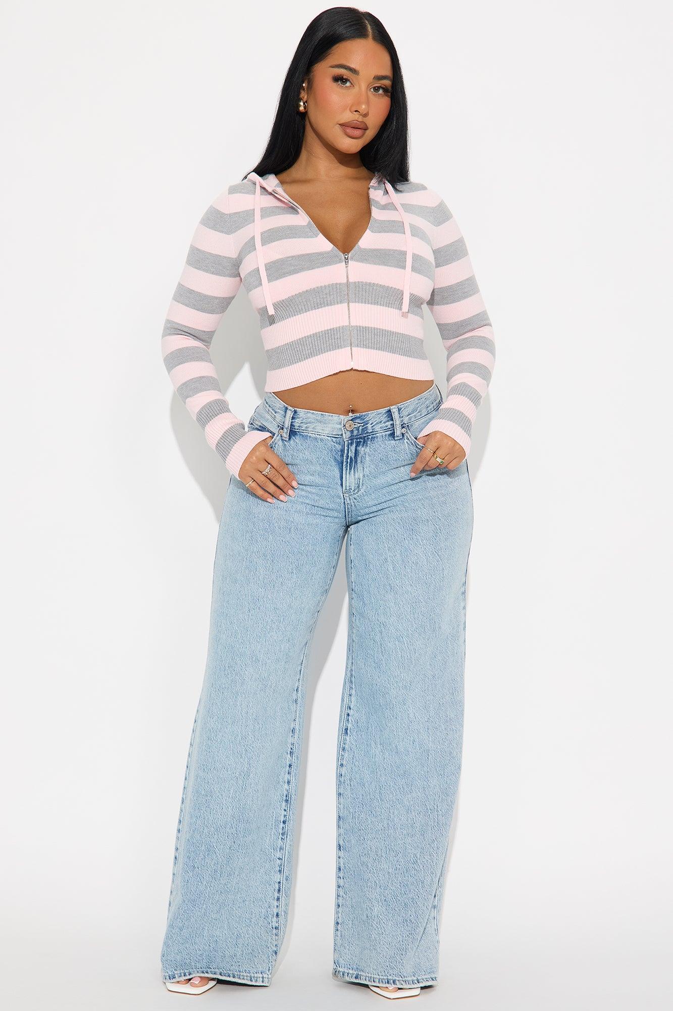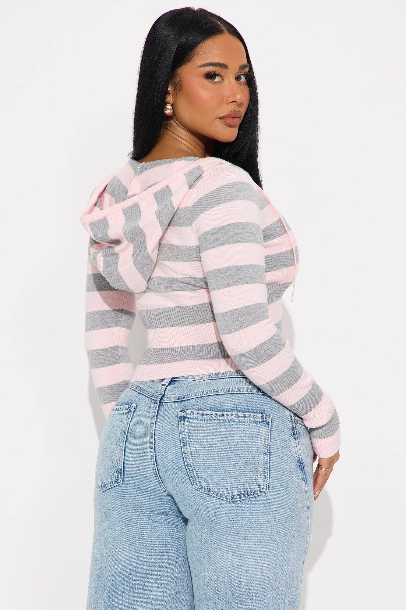 Simple Pleasures Front Zip Striped Cropped Sweater - Pink/combo Female