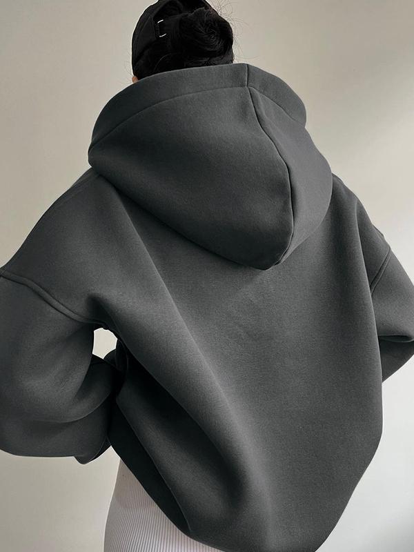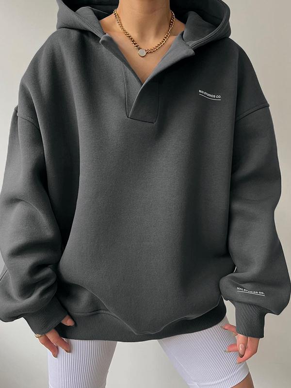Simple Print V Neck Hooded Sweatshirt