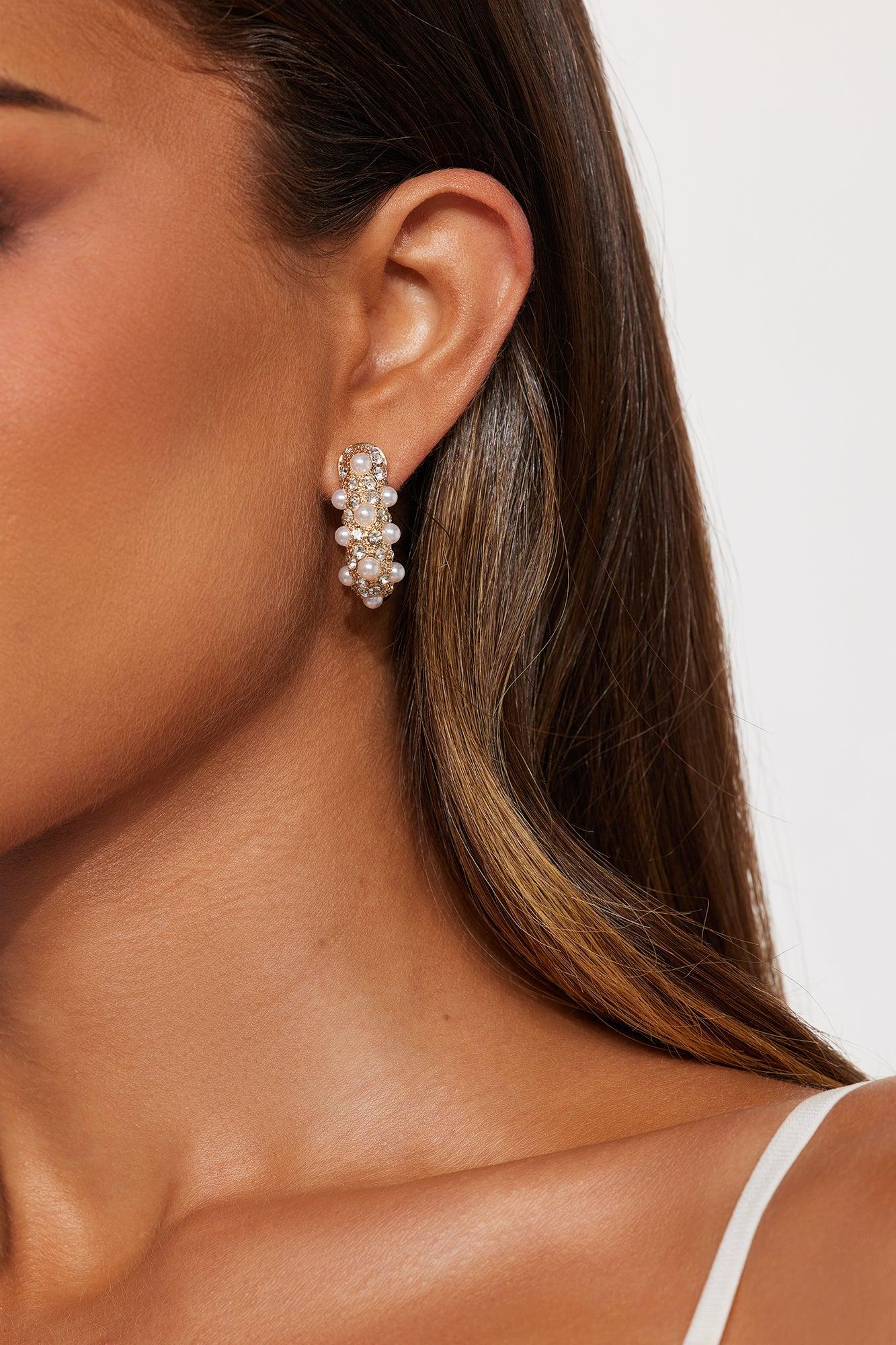 Available In Gold. Drop Earrings Rhinestone Trim Post Back Closure Final Sale Imported