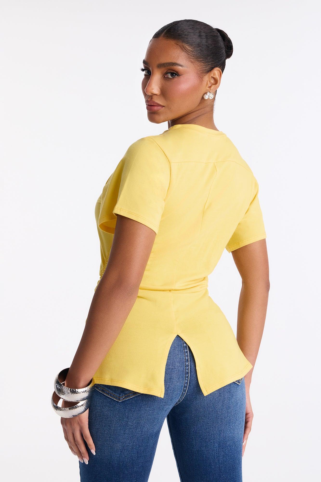 Simply Me Ruched Short Sleeve T-Shirt - Butter Yellow Female