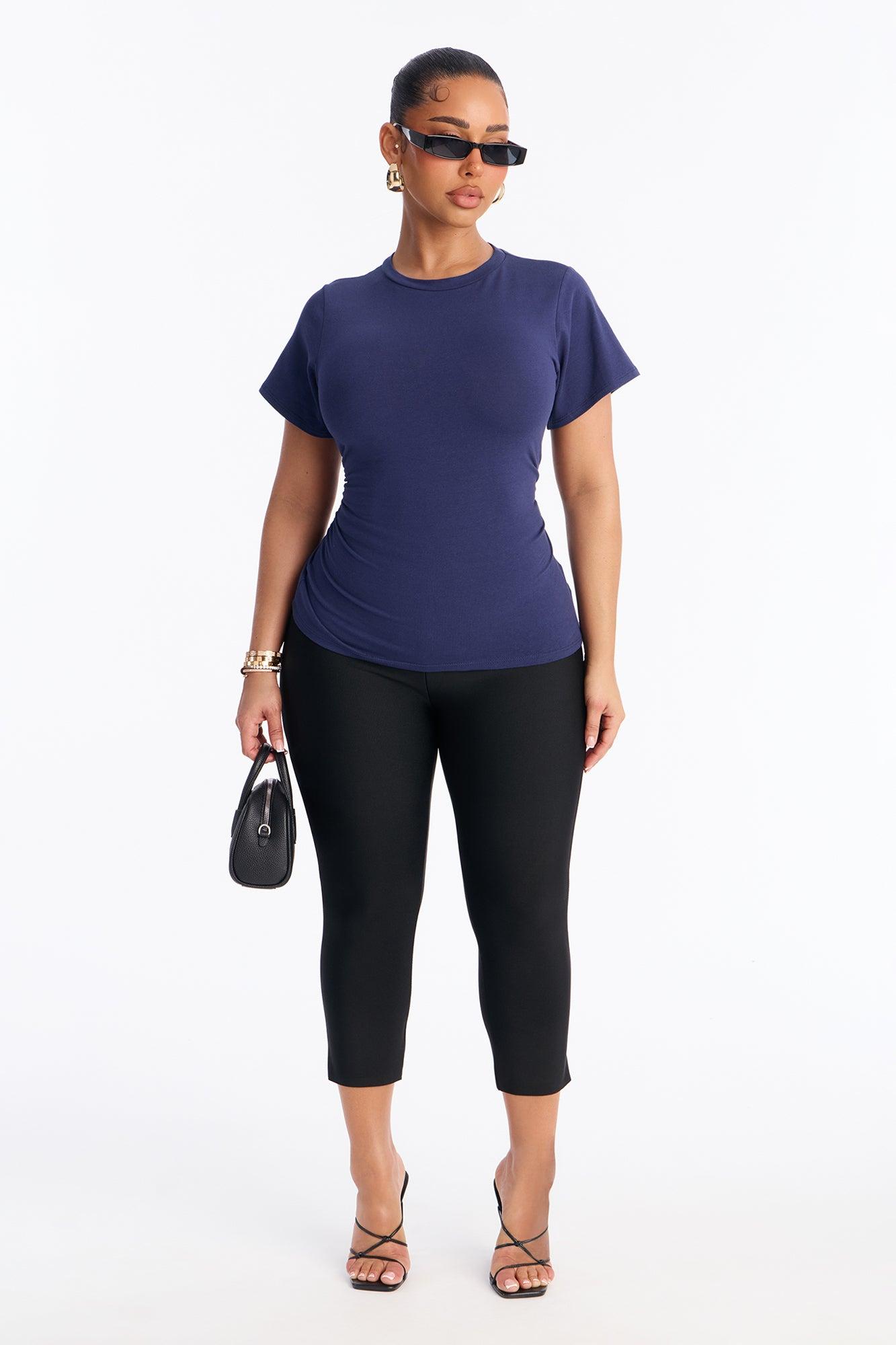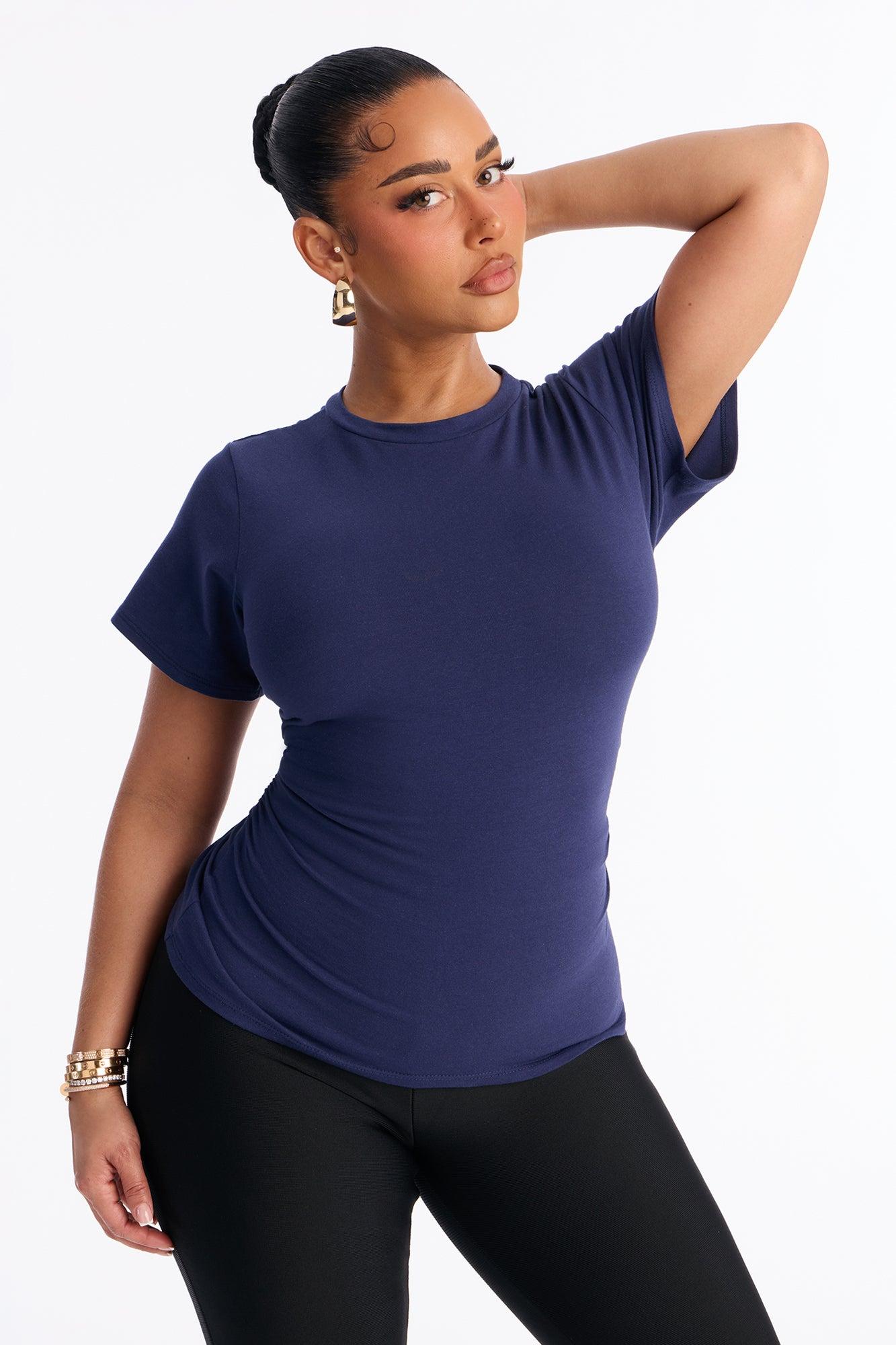Simply Me Ruched Short Sleeve T-Shirt - Navy Female