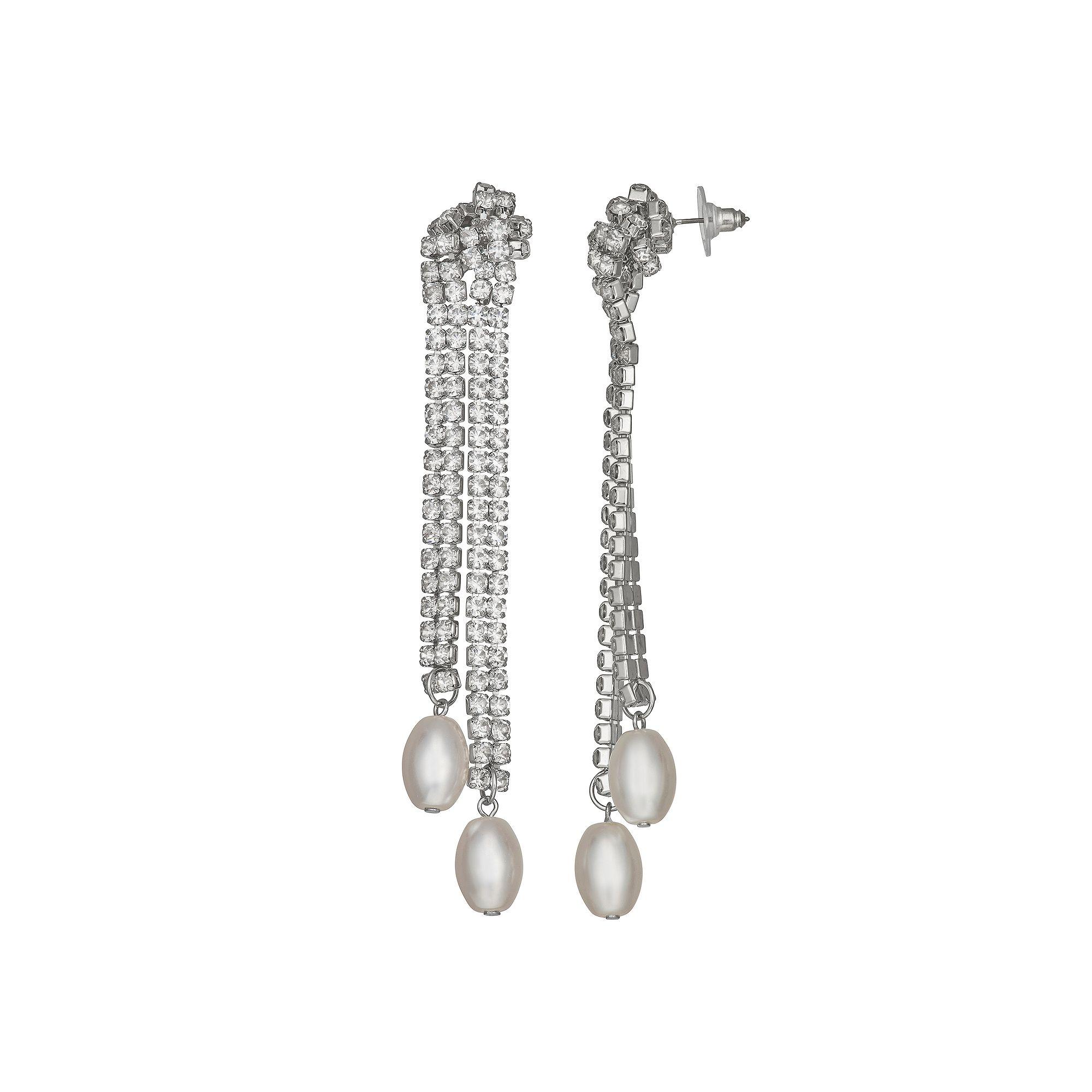 Accessorize in style with these Simply Vera Vera Wang knot chain linear post earrings. Click on this JEWELRY & WATCHES GUIDE to learn about fit, styles, materials and more! Accessorize in style with these Simply Vera Vera Wang knot chain linear post earrings. Click on this JEWELRY & WATCHES GUIDE to learn about fit, styles, materials and more! FEATURES Length: 105 mm Backings: post Nickel safe Material: 50% recycled brass, 5% recycled steel, 40% glass, 5% plastic Plating: silver tone Finish: polishedRESPONSIBLE Contains at least 50% recycled metal Not appropriate for children 14 years old and younger. Size: One Size. Gender: female. Age Group: adult.