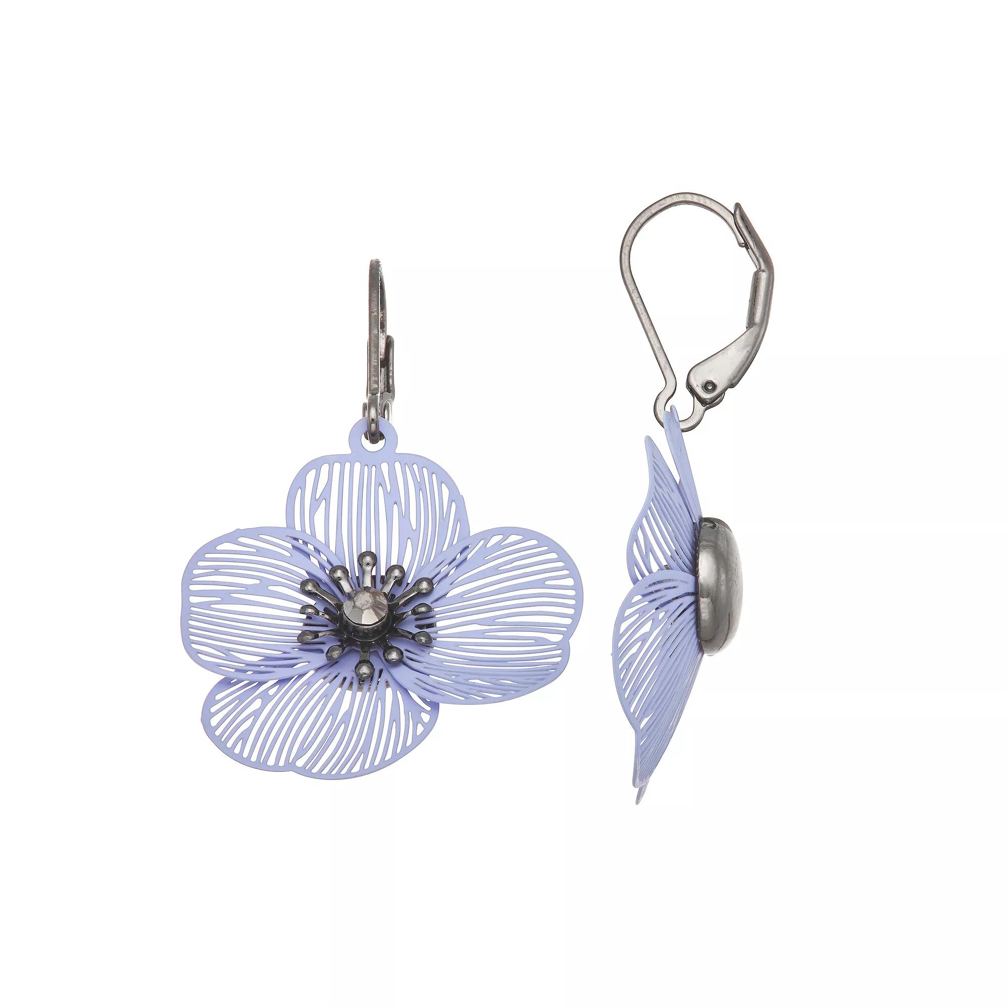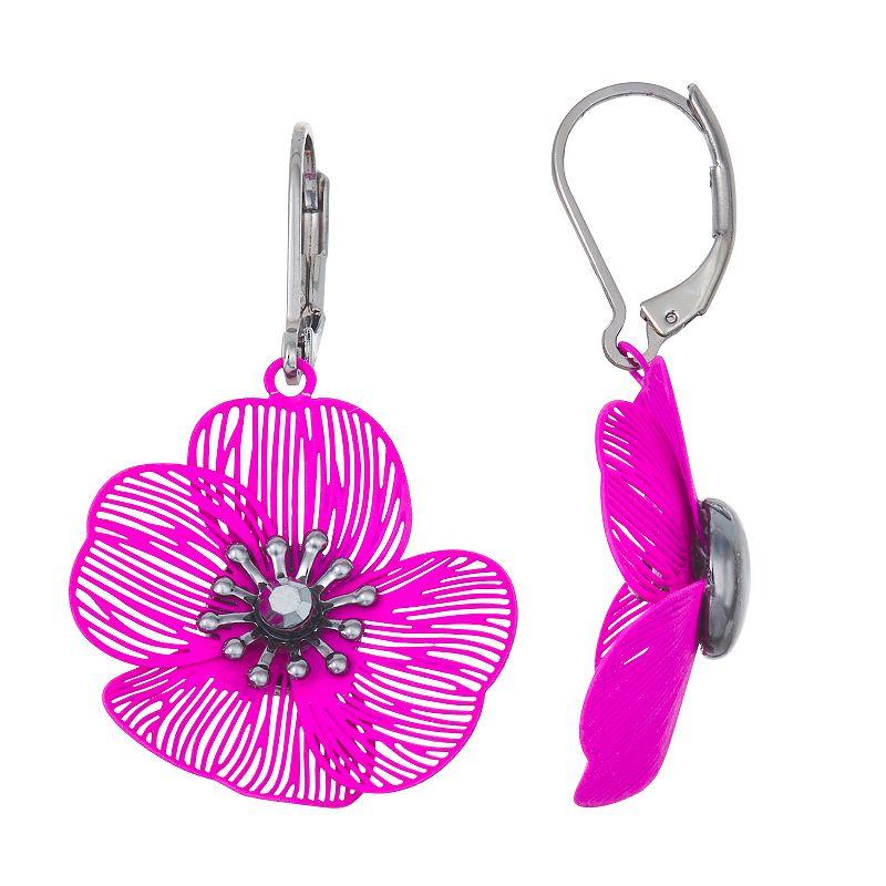 Accessorize in style with these Simply Vera Vera Wang leverback small flower drop earrings. Accessorize in style with these Simply Vera Vera Wang leverback small flower drop earrings. FEATURES Length: 40 mm Backings: leverback Nickel safe Material: 20% steel, 20% recycled zinc, 5% glass, 55% recycled brass Plating: black, silver tone Finish: polishedSUSTAINABILITY FEATURES Contains at least 50% recycled metal Global Recycled Standard Certified Not appropriate for children 14 years old and younger. Size: One Size. Color: Pink. Gender: female. Age Group: adult.
