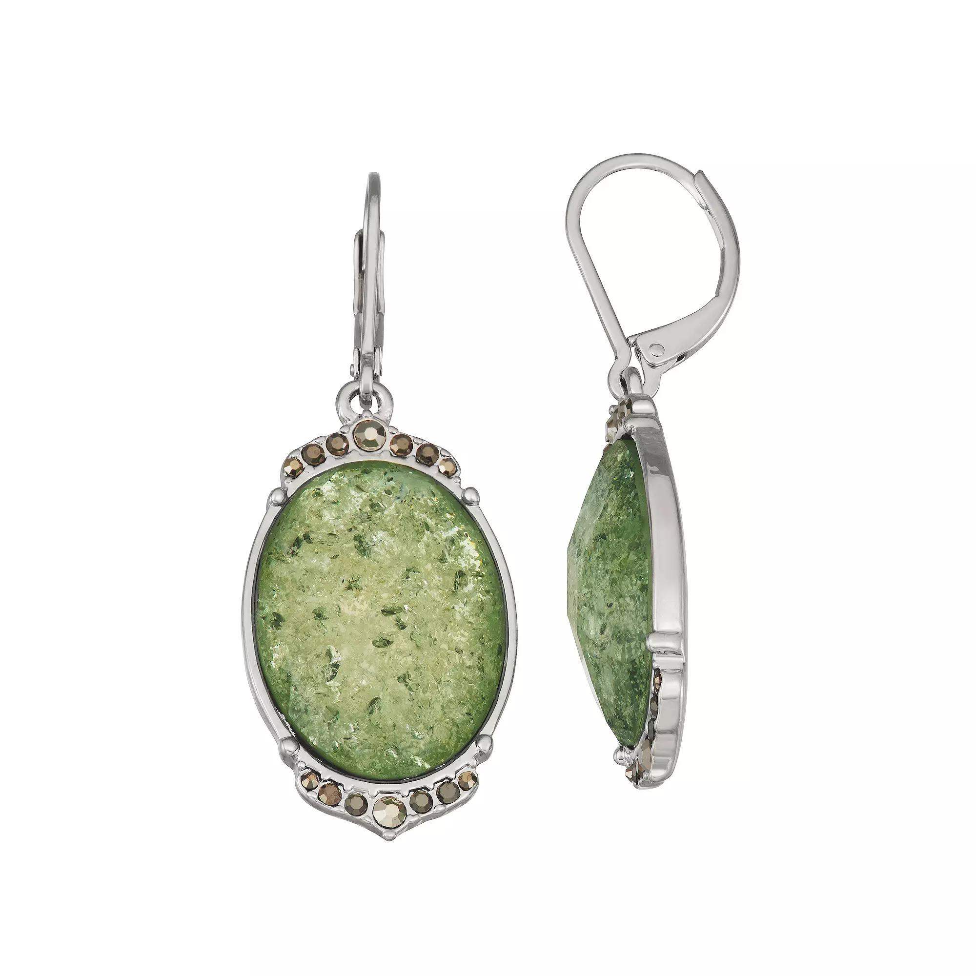 Amp up your fabulous fashion sense with these Simply Vera Vera Wang drop earrings. Amp up your fabulous fashion sense with these Simply Vera Vera Wang drop earrings. Metal: alloy Finish: polished Backing: leverback Plating: silver tone Stone: acrylic Additional material: plastic Nickel safe 1.74-in. lengthSUSTAINABILITY FEATURES 45% Recycled Zinc+10%Recycled brassl+ 5% Glass+40%Plastic Global Recycled Standard Certified Contains recycled materials Not appropriate for children 14 years old and younger. Size: One Size. Color: Green. Gender: female. Age Group: adult. Material: Sterling Silver.