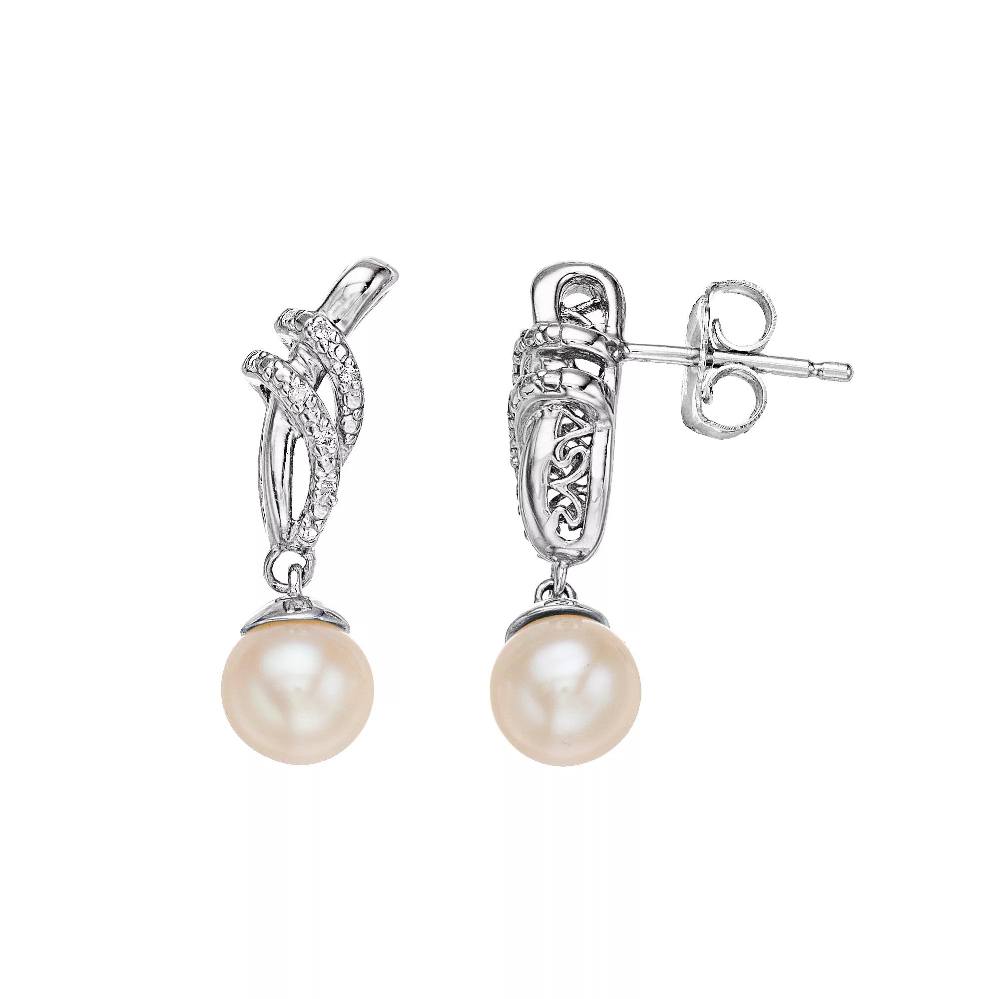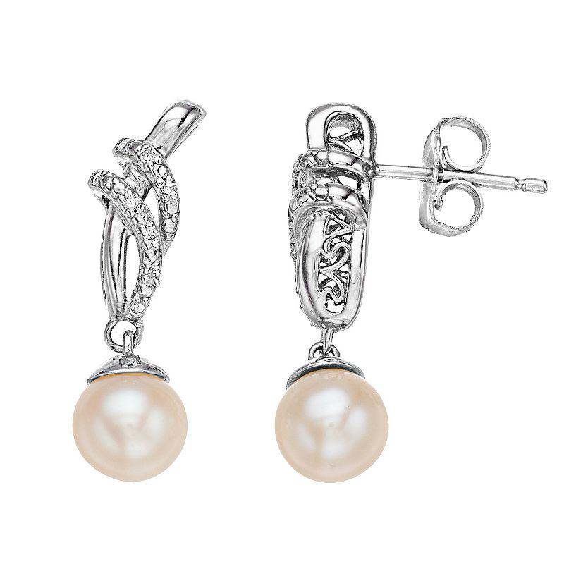 Beautifully complemented by scintillating diamonds, these cultured pearl drop earrings are an elegant addition to your look. Beautifully complemented by scintillating diamonds, these cultured pearl drop earrings are an elegant addition to your look. Length: 0.82 in. Backings: post Metal: sterling silver Plating: rhodium Finish: polished Packaging: boxedDIAMOND DETAILS Total weight: 1/10 ct. Shape: round Setting: prongCULTURED PEARL DETAILS Type: freshwater Size: 6 mm Shape: round Color: white Gemstones may have been treated to enhance their appearance. Special care may be required. Please visit our Gemstone Treatment & Special Care Guide for more information. Diamond weights are approximate. Diamond total weights may vary between .01 and .08 ct. Some diamonds have fewer than 17 facets. Image(s) may be enlarged to show detail. Please note, due to the high value of this item, a signature may be required upon delivery. Size: One Size. Gender: female. Age Group: adult.