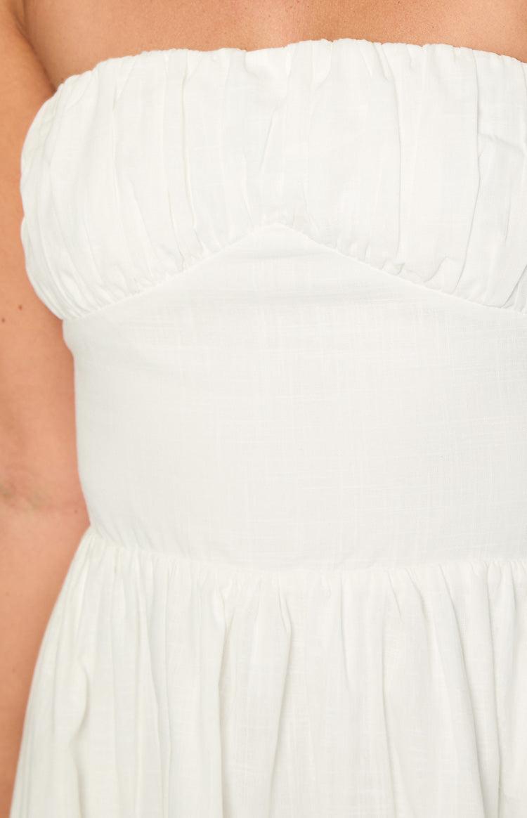 White Strapless Mini DressHow to style:A must-have for your wardrobe! Our Sinai White Strapless Mini Dress features a lightweight cotton fabric, a gathered bust panel, and a tiered skirt for a feminine and flattering look. Perfect for summer, this mini can be dressed up or down—pair it with heels and gold jewellery for a gorgeous night out or keep it casual for a weekend with friends.Features: Mini length Fully lined Gathered bust panel Fitted waist Tiered skirt Lightweight cotton fabric Invisible side zipper Perfect for graduations or birthdays!