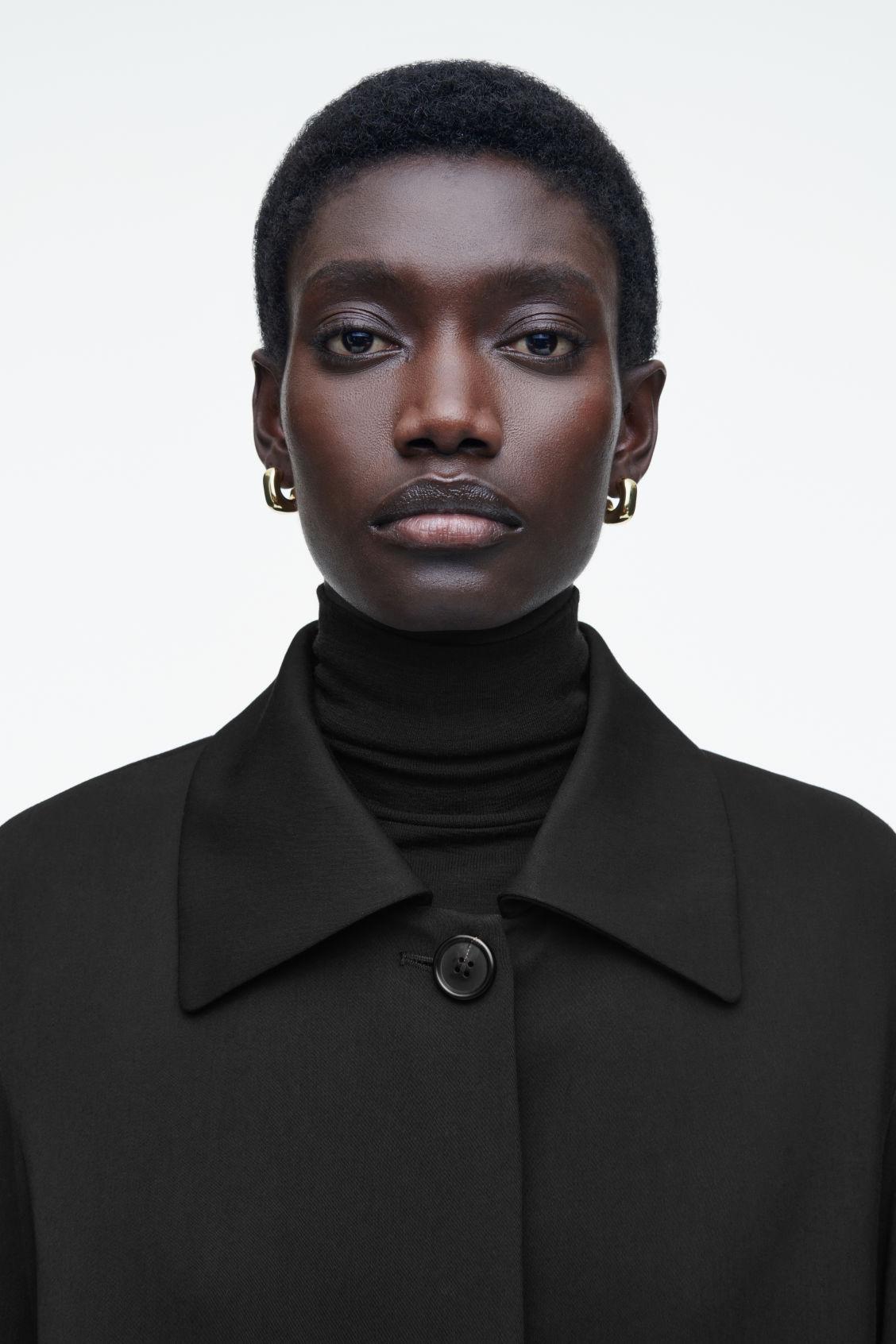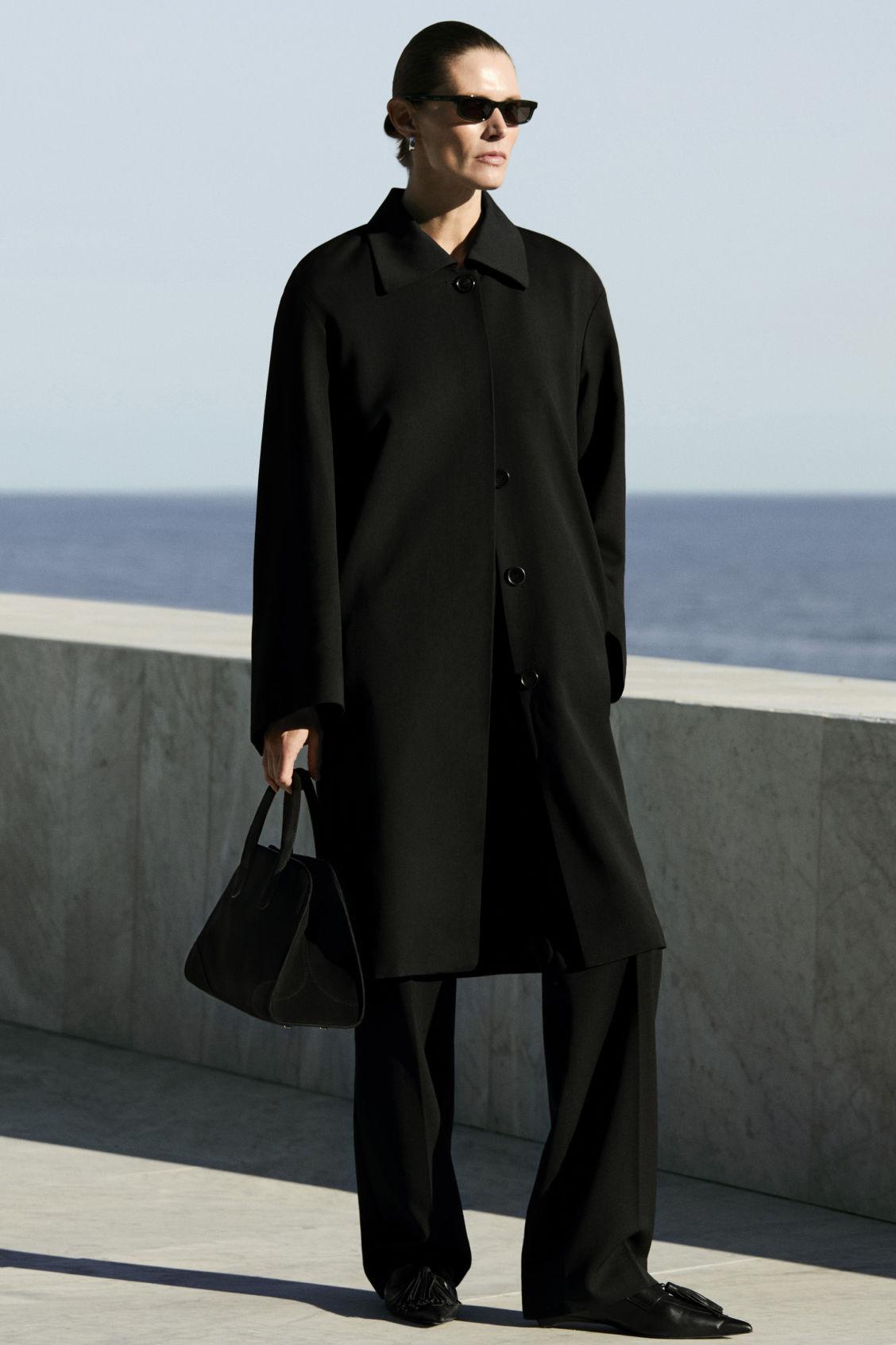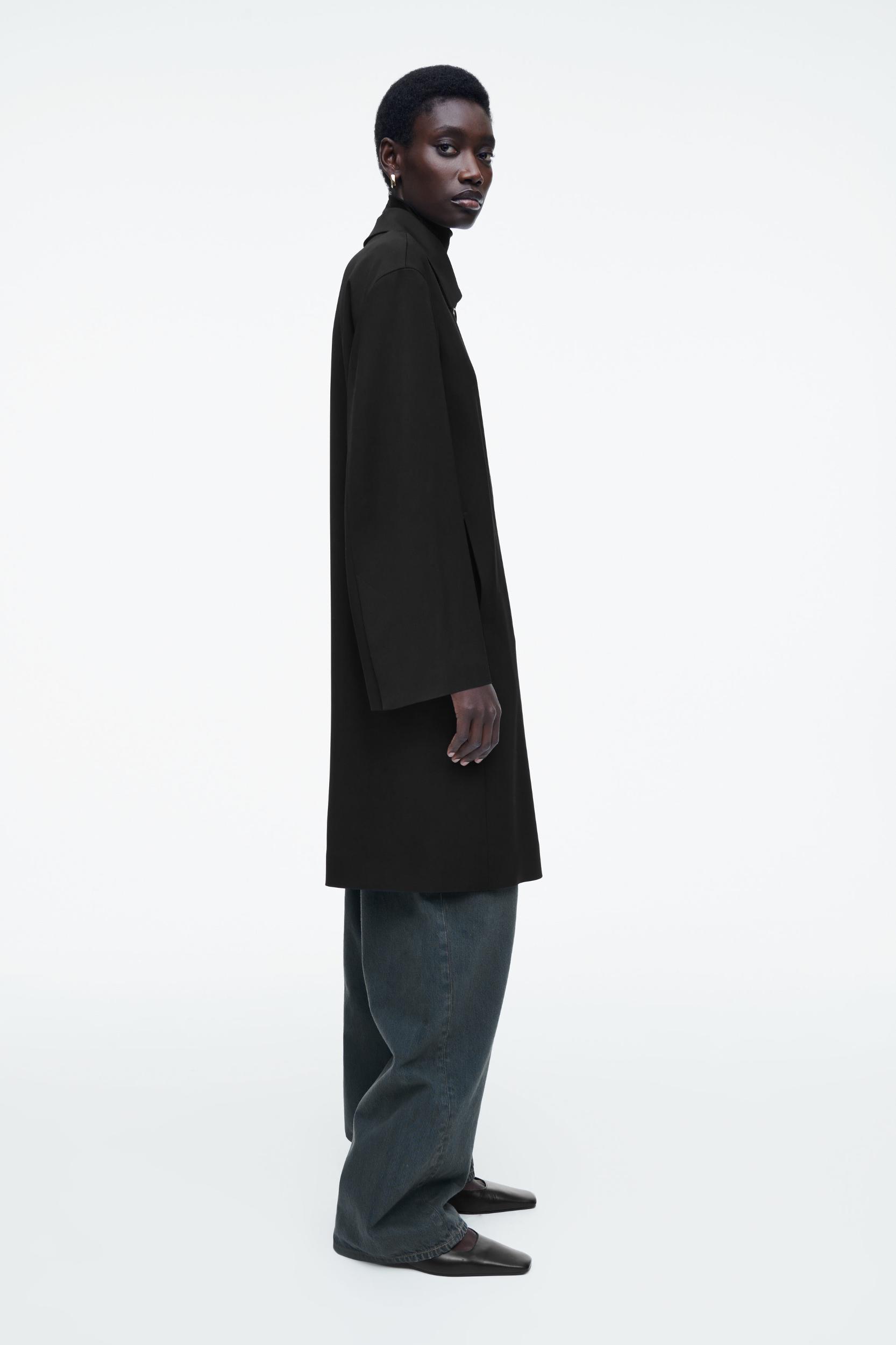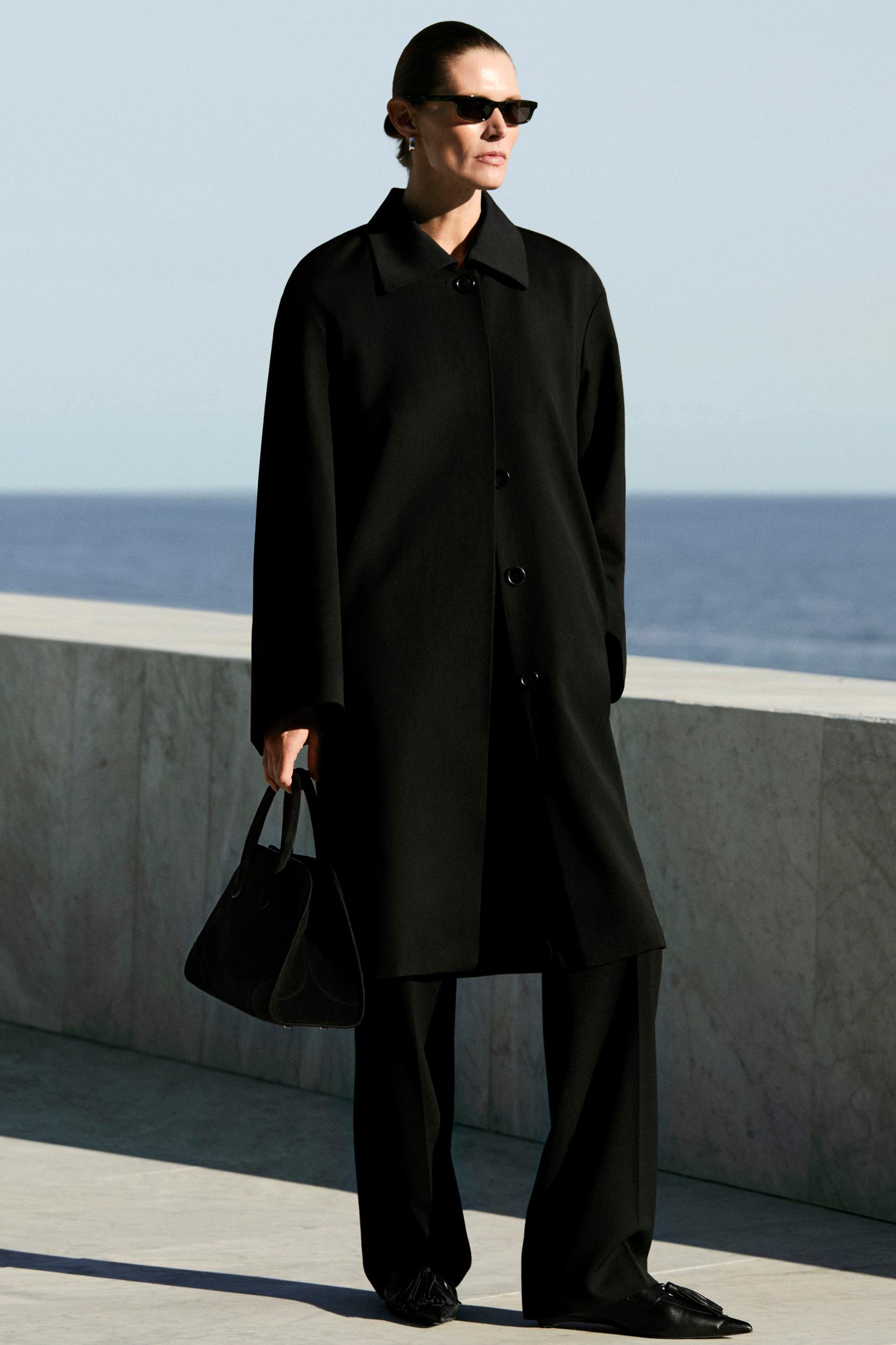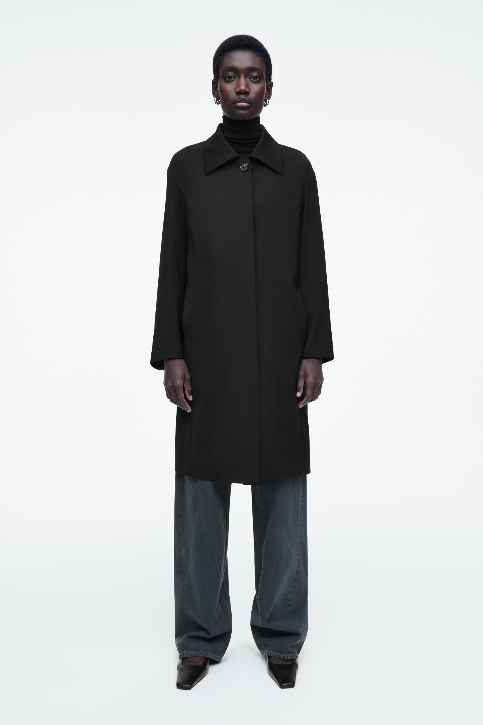 This season, understated staples bring a sense of ease to the modern wardrobe. Crafted from a fluid double-faced fabric, this car coat is cut in a classic single-breasted shape and designed with a pointed collar, side-seam pockets and a concealed placket. Regular fitButton closureECOVERO™ is a trademark of Lenzing AG. Viscose fibers are derived from certified renewable wood sources using a lower environmental impact process Shell: 63% ECOVERO™ Viscose, 35% Viscose, 2% Elastane. Lining: 100% Viscose. Excluding trims / Dry clean Back length of size 6 is 39.56" / Model wears a size 6