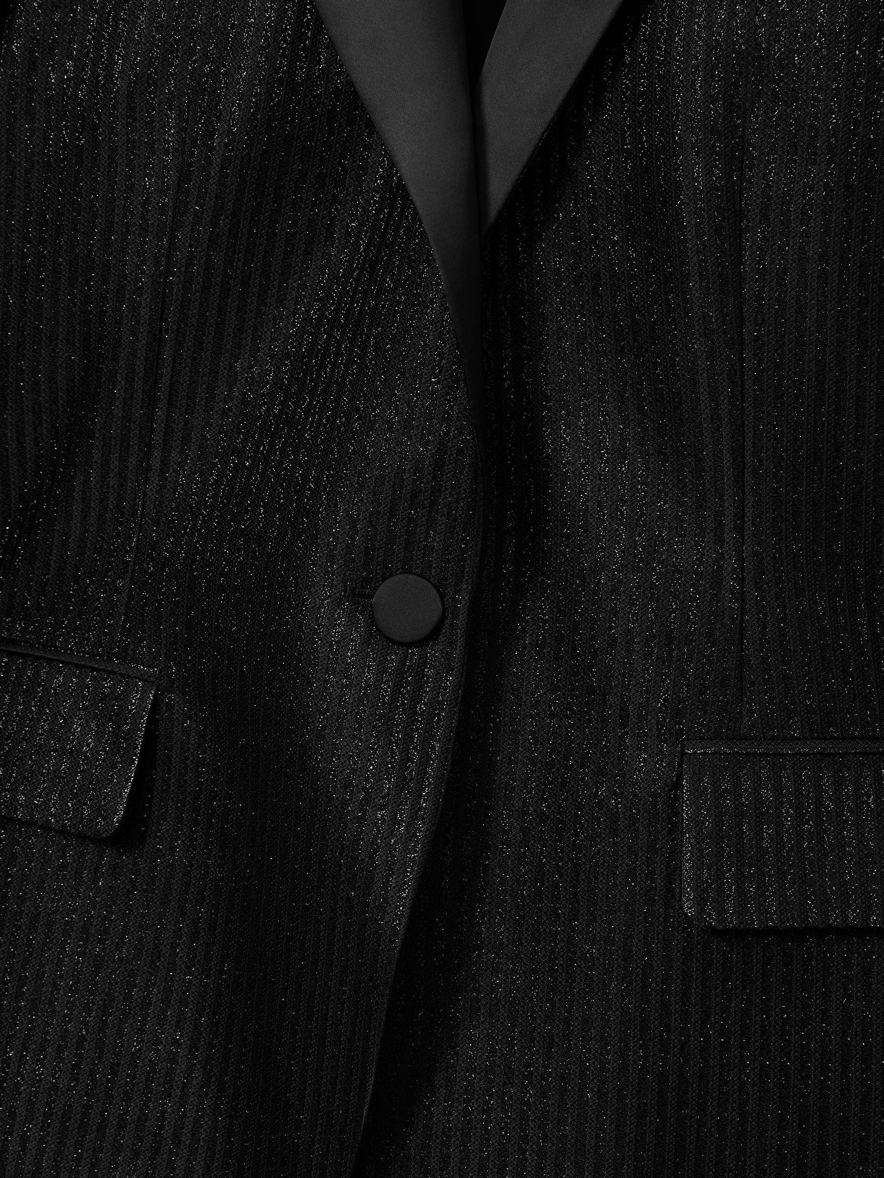 Glittering lamé stripes bring a playful air of modernity to the Minnie tuxedo jacket. Crafted from twill, it has satin-faced peak lapels that roll gracefully into the waist button and is accented with flap pockets. Lightweight twill. Padded shoulders. Satin peak lapels. Surgeon’s cuffs. Flap pockets. Single back vent. Faille lining. Single-breasted waist button. Measurements of model: Height 5ft 9" / 175cm. The model is wearing a size 8.