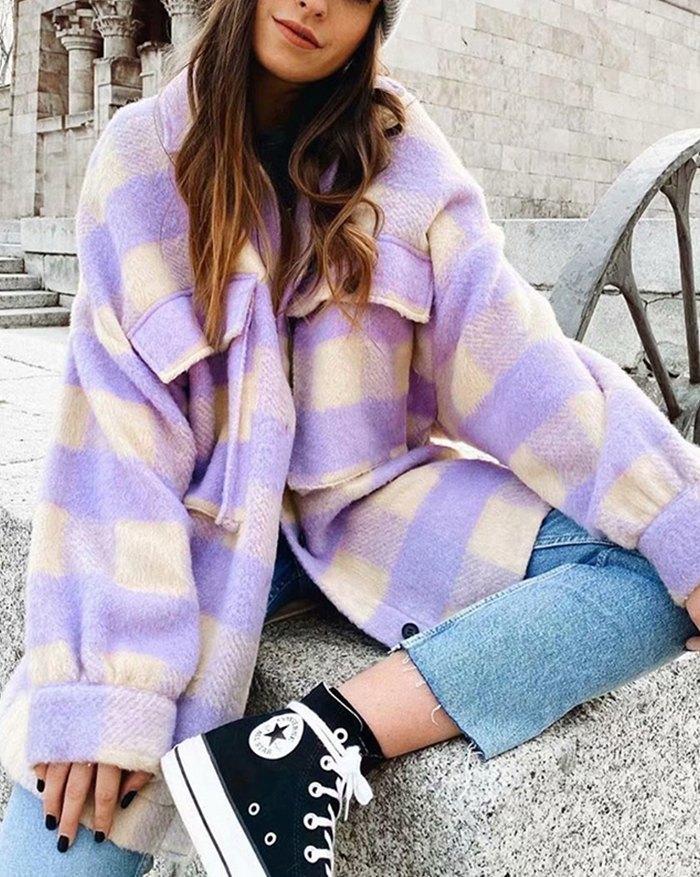 Single-breasted Plaid Loose Coat