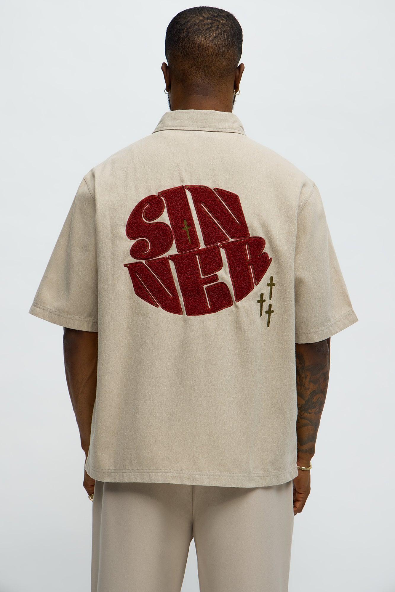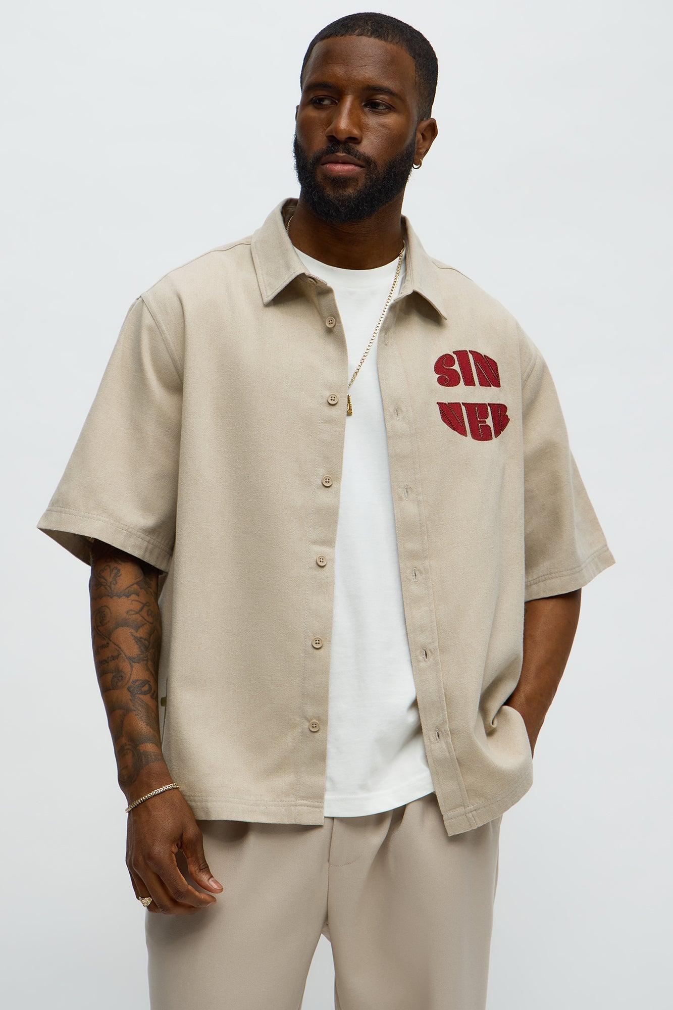 Sinner Cropped Button Up Shirt - Sand