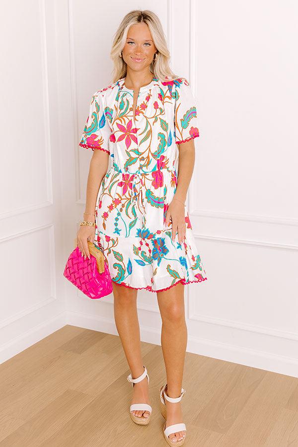 - Make a vibrant statement with this floral mini dress! With its charming scalloped trim it brings a pop of style to any occasion. It's the perfect piece for embracing sweet, feminine vibes with every step!