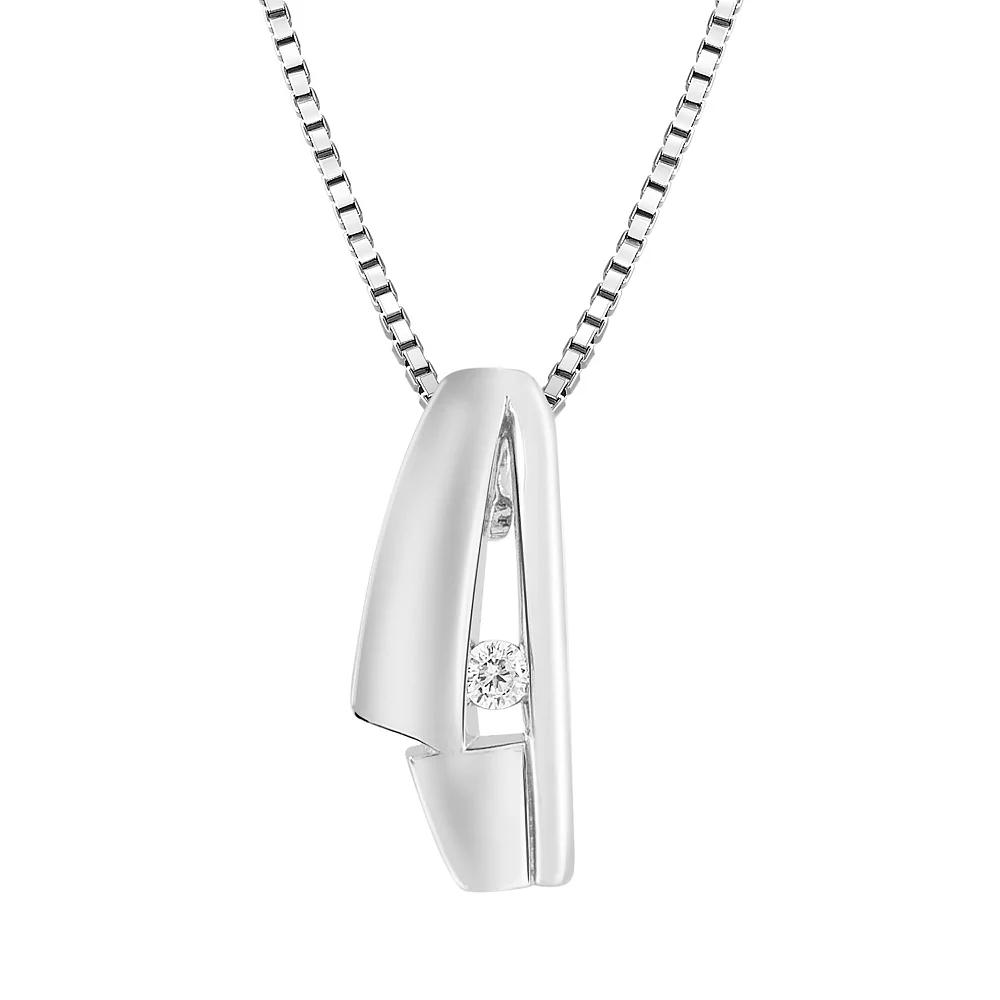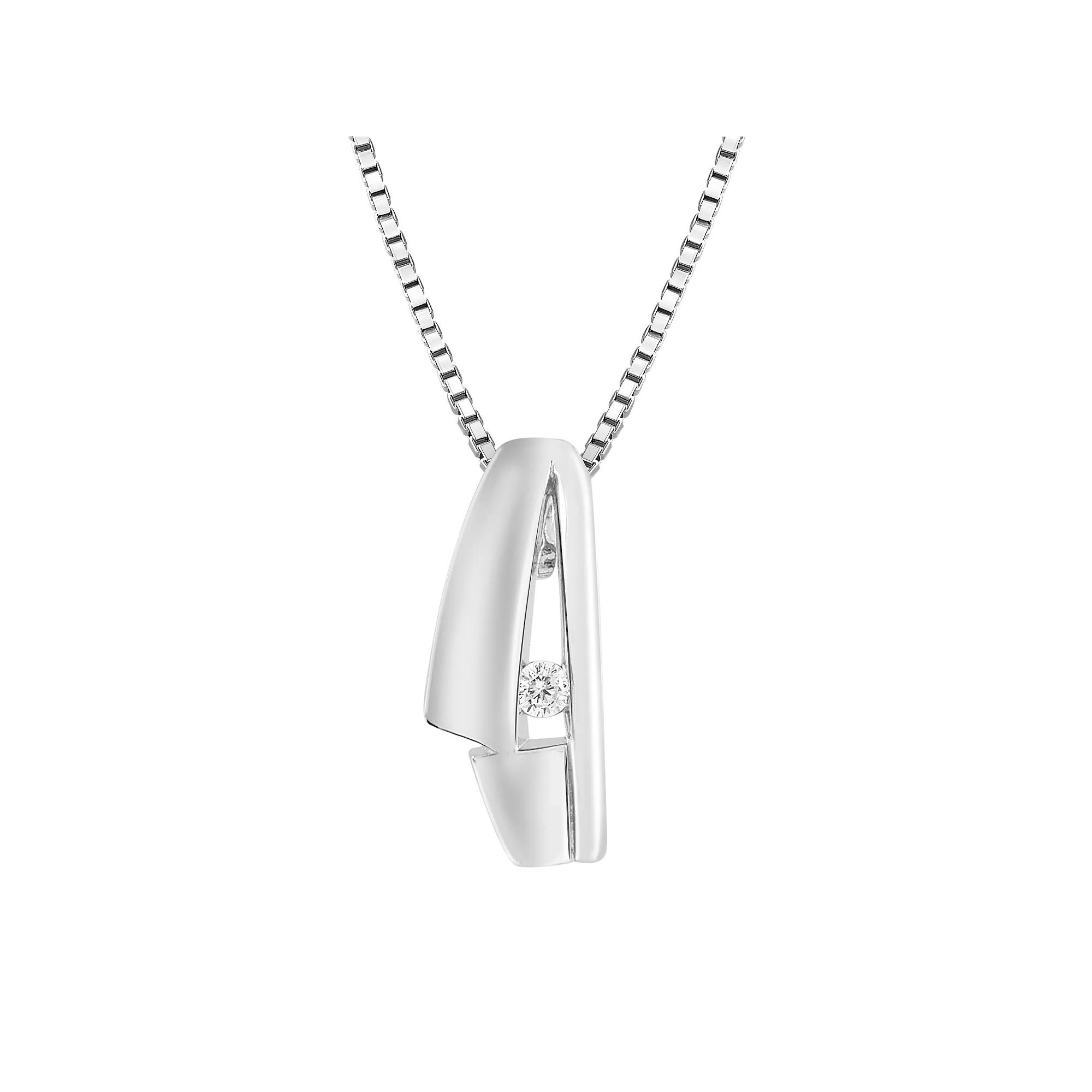 SIRI Sterling Silver Rhodium-Plated Curved Bar Pendant with Cubic Zirconia Stone, Women's,  Product Image