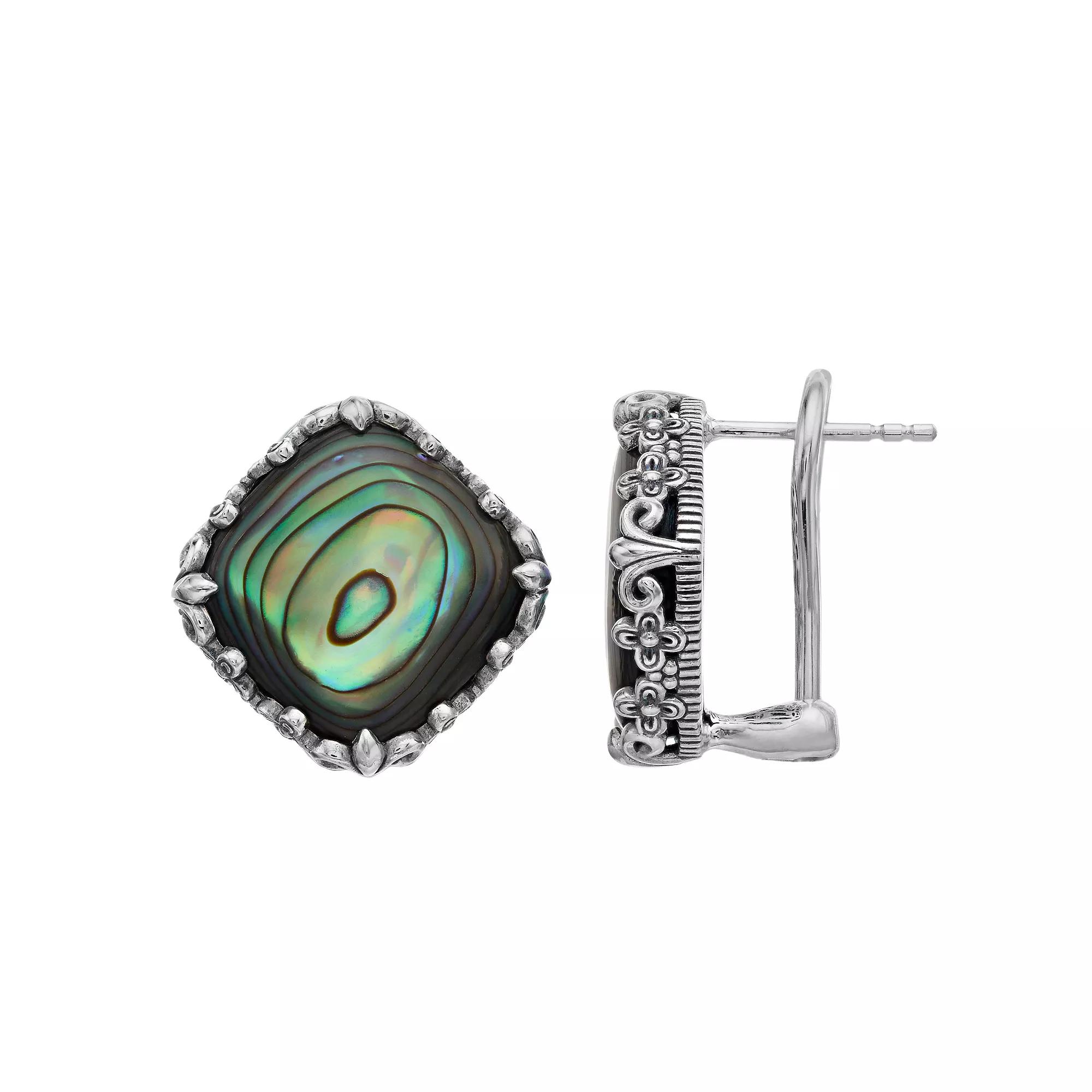 You'll captivate from every angle whenever you don these dazzling SIRI USA by TJM omega earrings. You'll captivate from every angle whenever you don these dazzling SIRI USA by TJM omega earrings. Metal: sterling silver Closures: omega Packaging: boxed Plating: rhodium Finish: polished Length: 0.72 in.STONE DETAILS Stone type: abalone Center stone size: 14 mm x 14 mm Shape: cushion cut Setting: prong Gemstones may have been treated to enhance their appearance. Special care may be required. Please visit our Gemstone Treatment & Special Care Guide for more information. Please note, due to the high value of this item, a signature may be required upon delivery. Color: Blue. Gender: female. Age Group: adult.