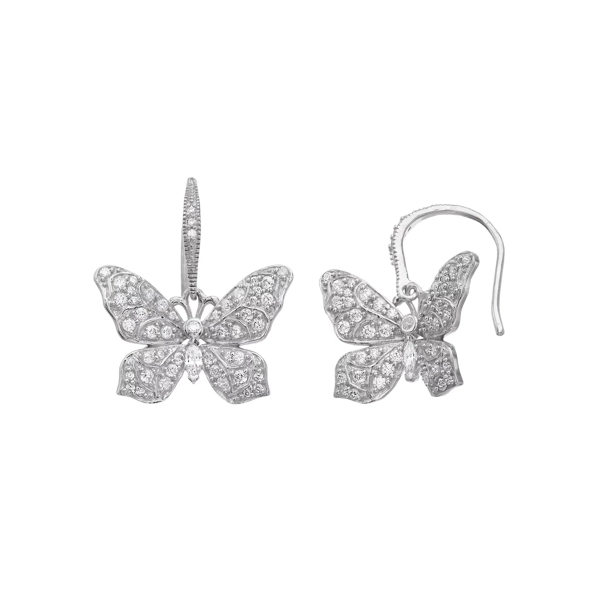 Add a sweet touch of sparkle to your jewelry box with these cubic zirconia-studded SIRI USA by TJM sterling silver butterfly drop earrings. Add a sweet touch of sparkle to your jewelry box with these cubic zirconia-studded SIRI USA by TJM sterling silver butterfly drop earrings. FEATURES Length: 23.75 mm Backings: Frenchwire Nickel free Metal: sterling silver Plating: rhodium Finish: polished Packaging: boxedSTONE DETAILS Stone type: cubic zirconia Total weight: 1 1/10 ct. Shape: marquise Setting: bezel Gemstones may have been treated to enhance their appearance. Special care may be required. Please visit our Gemstone Treatment & Special Care Guide for more information. Size: One Size. Color: White. Gender: female. Age Group: adult.