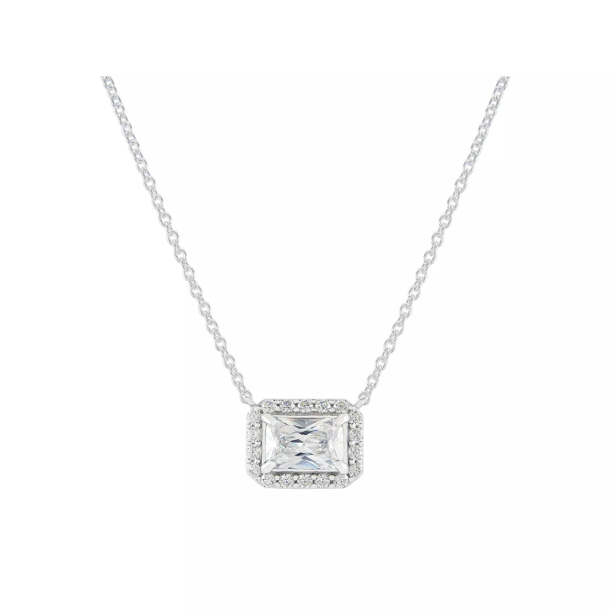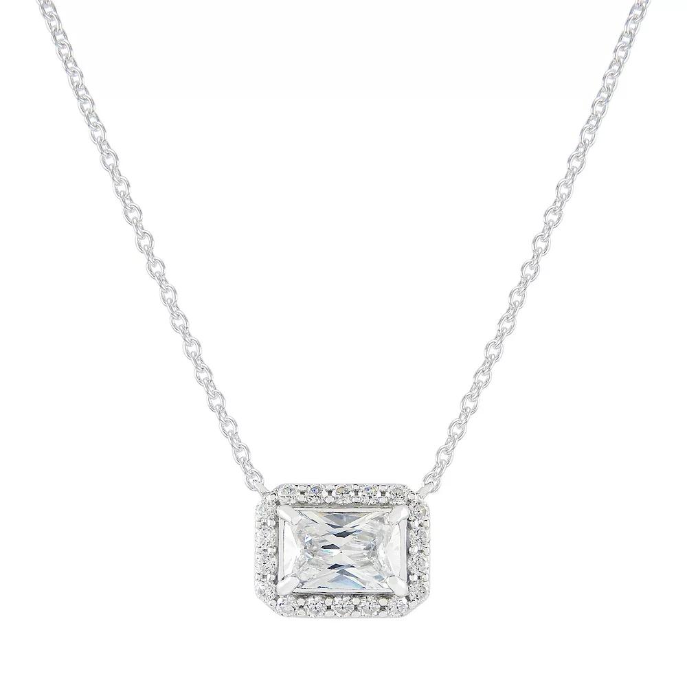 You'll love the beautiful and elegant style of this SIRI USA by TJM Sterling Silver Cubic Zirconia Rectangular Halo Necklace. Click on this JEWELRY & WATCHES GUIDE to learn about fit, styles, materials and more! You'll love the beautiful and elegant style of this SIRI USA by TJM Sterling Silver Cubic Zirconia Rectangular Halo Necklace. Click on this JEWELRY & WATCHES GUIDE to learn about fit, styles, materials and more! FEATURES Pendant dimensions: 0.24 in. x 0.26 in. Chain length: 18 in. Chain type: cable Clasp: lobster-claw Metal: sterling silver Plating: rhodium Finish: polished Packaging: boxed Imported Nickel freeSTONE DETAILS Stone type: cubic zirconia Shape: octagon Setting: prong Size: 18". Gender: female. Age Group: adult.