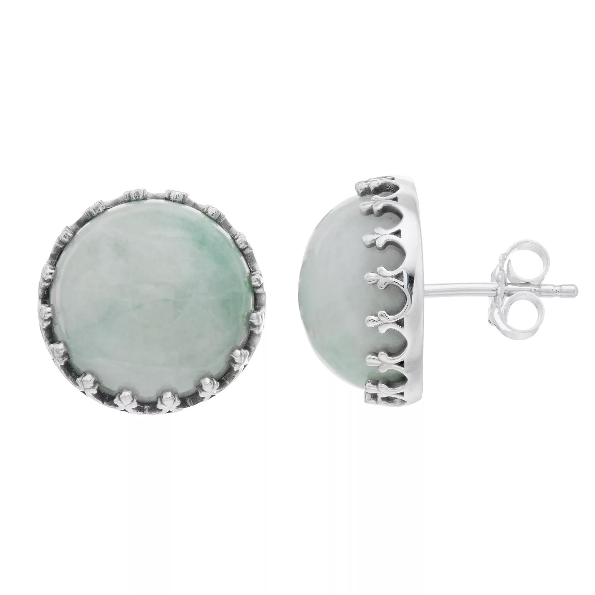 Add a captivating touch to your favorite outfits when you wear these SIRI USA by TJM jade stud earrings. Add a captivating touch to your favorite outfits when you wear these SIRI USA by TJM jade stud earrings. Dimensions: 0.60L x 0.57W Backings: post Nickel free Metal: sterling silver Plating: rhodium Finish: polished Packaging: boxedSTONE DETAILS Stone type: jadeite jade Center stone size: 14 mm Shape: round Setting: prong Gemstones may have been treated to enhance their appearance. Special care may be required. Please visit our Gemstone Treatment & Special Care Guide for more information. Please note, due to the high value of this item, a signature may be required upon delivery. Color: Green. Gender: female. Age Group: adult.