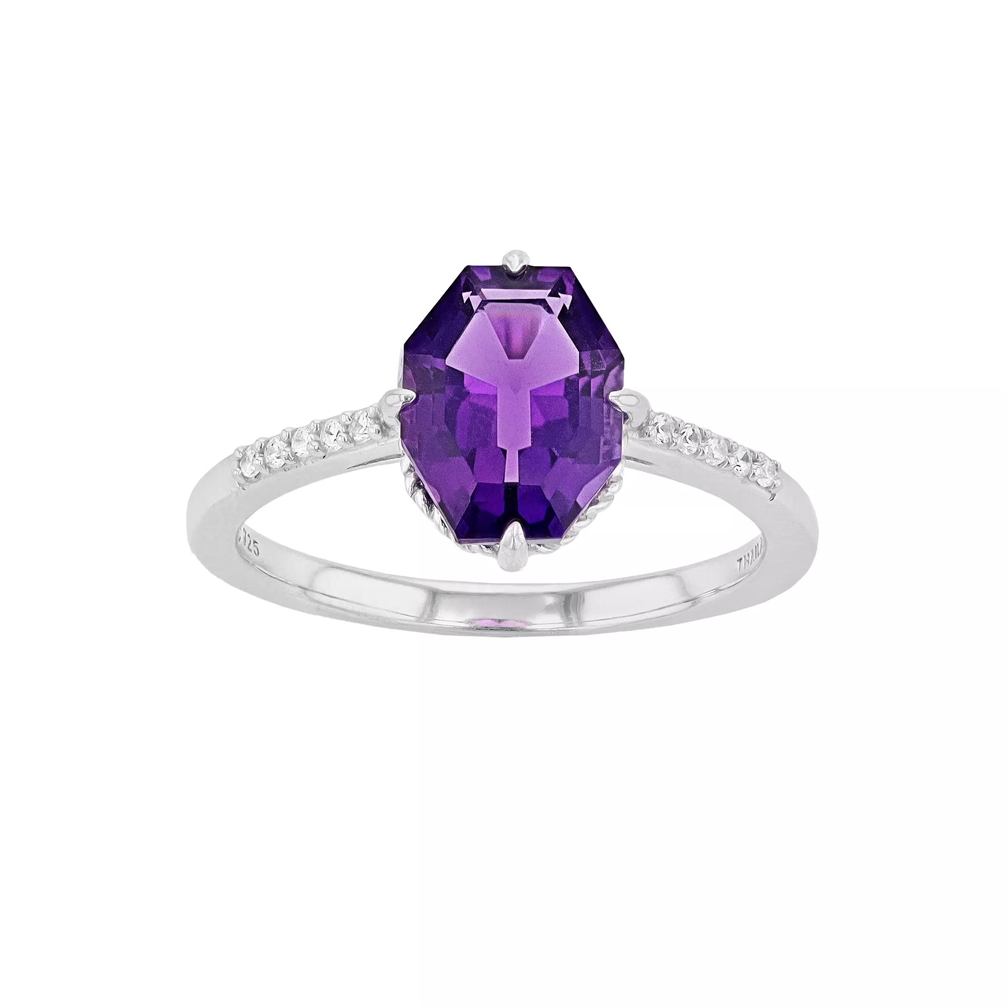 Add a touch of color and charm to your style with this SIRI USA by TJM Sterling Silver Lab-Created Amethyst & Cubic Zirconia statement ring. Click on this JEWELRY & WATCHES GUIDE to learn about fit, styles, materials and more! Add a touch of color and charm to your style with this SIRI USA by TJM Sterling Silver Lab-Created Amethyst & Cubic Zirconia statement ring. Click on this JEWELRY & WATCHES GUIDE to learn about fit, styles, materials and more! FEATURES Width: 0.80 in. Shank style: anniversary Nickel free Metal: sterling silver Plating: rhodium Finish: polished Packaging: boxedSTONE DETAILS Stone type: lab-created amethyst, cubic zirconia Total weight: 2 ct. Center stone weight: 1 9/10 ct. Center stone size: 9 mm x 7 mm Shape: octagon Setting: prong Gemstones may have been treated to enhance their appearance. Special care may be required. Please visit our Gemstone Treatment & Special Care Guide for more information. Color: Purple. Gender: female. Age Group: adult.