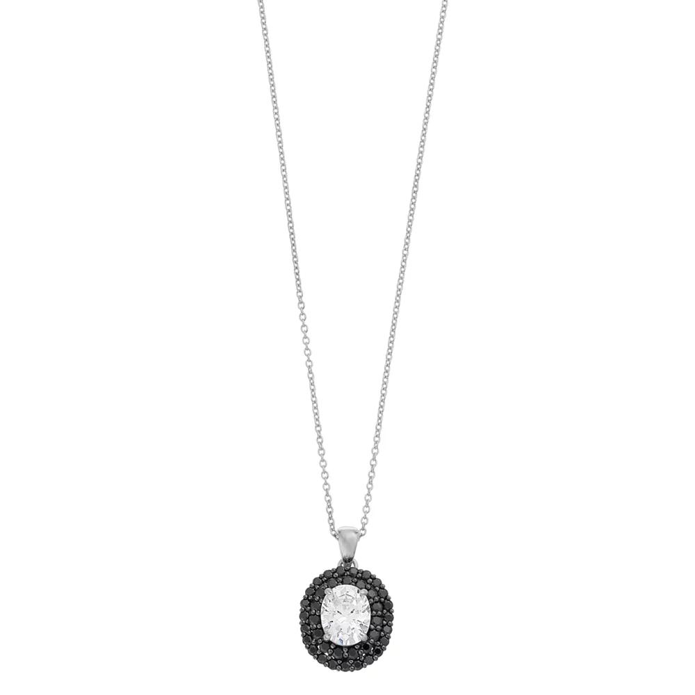 Featuring black and white cubic zirconia, this SIRI USA by TJM necklace is sure to catch the eye. Featuring black and white cubic zirconia, this SIRI USA by TJM necklace is sure to catch the eye. Pendant size: 0.98"L x 0.66"W Chain length: 18 in. Chain type: cable Nickel free Metal: sterling silver Plating: rhodium Finish: polished Packaging: boxedSTONE DETAILS Stone type: cubic zirconia, black cubic zirconia Total weight: 4 9/10 ct. Center stone weight: 4 7/8 ct. Center stone size: 10 mm x 8 mm Shape: oval Setting: prong Gemstones may have been treated to enhance their appearance. Special care may be required. Please visit our Gemstone Treatment & Special Care Guide for more information. Please note, due to the high value of this item, a signature may be required upon delivery. Size: 18". Color: Multicolor. Gender: female. Age Group: adult.