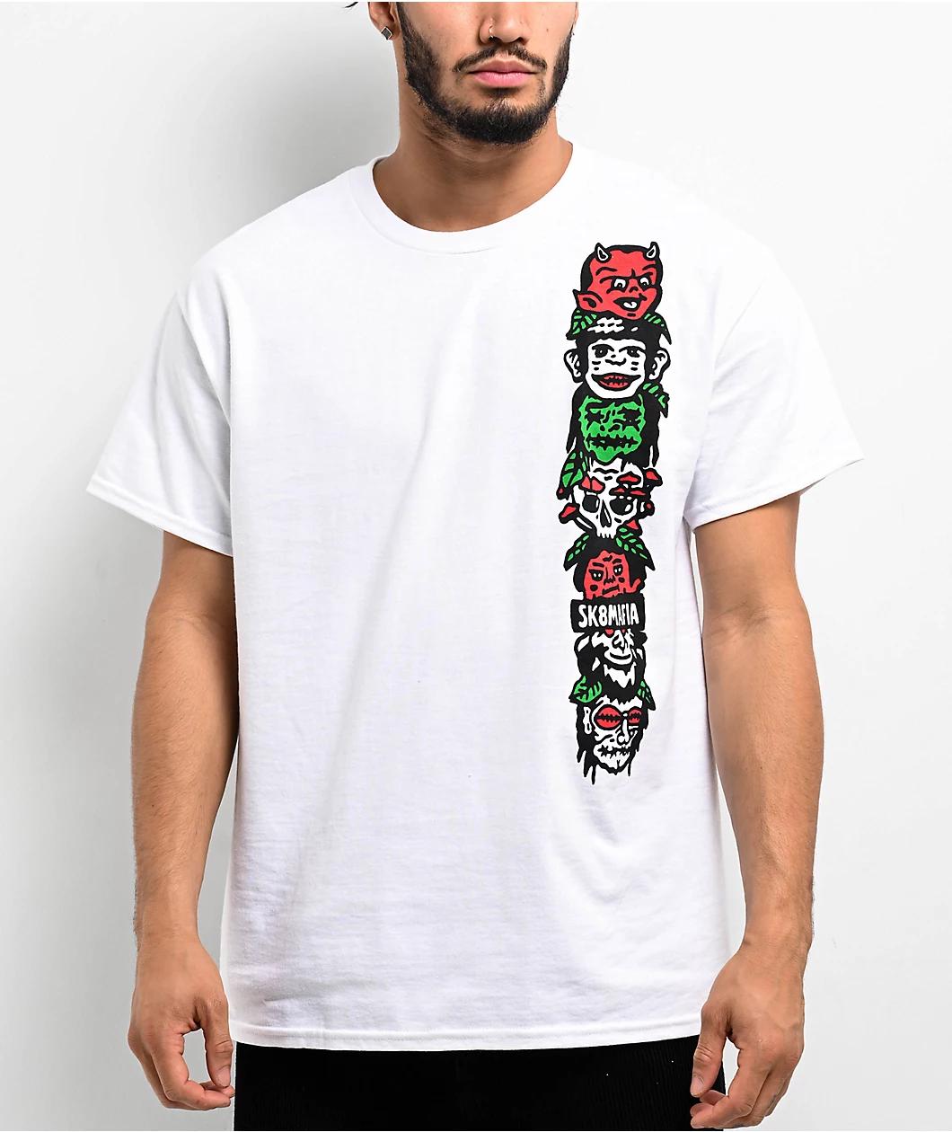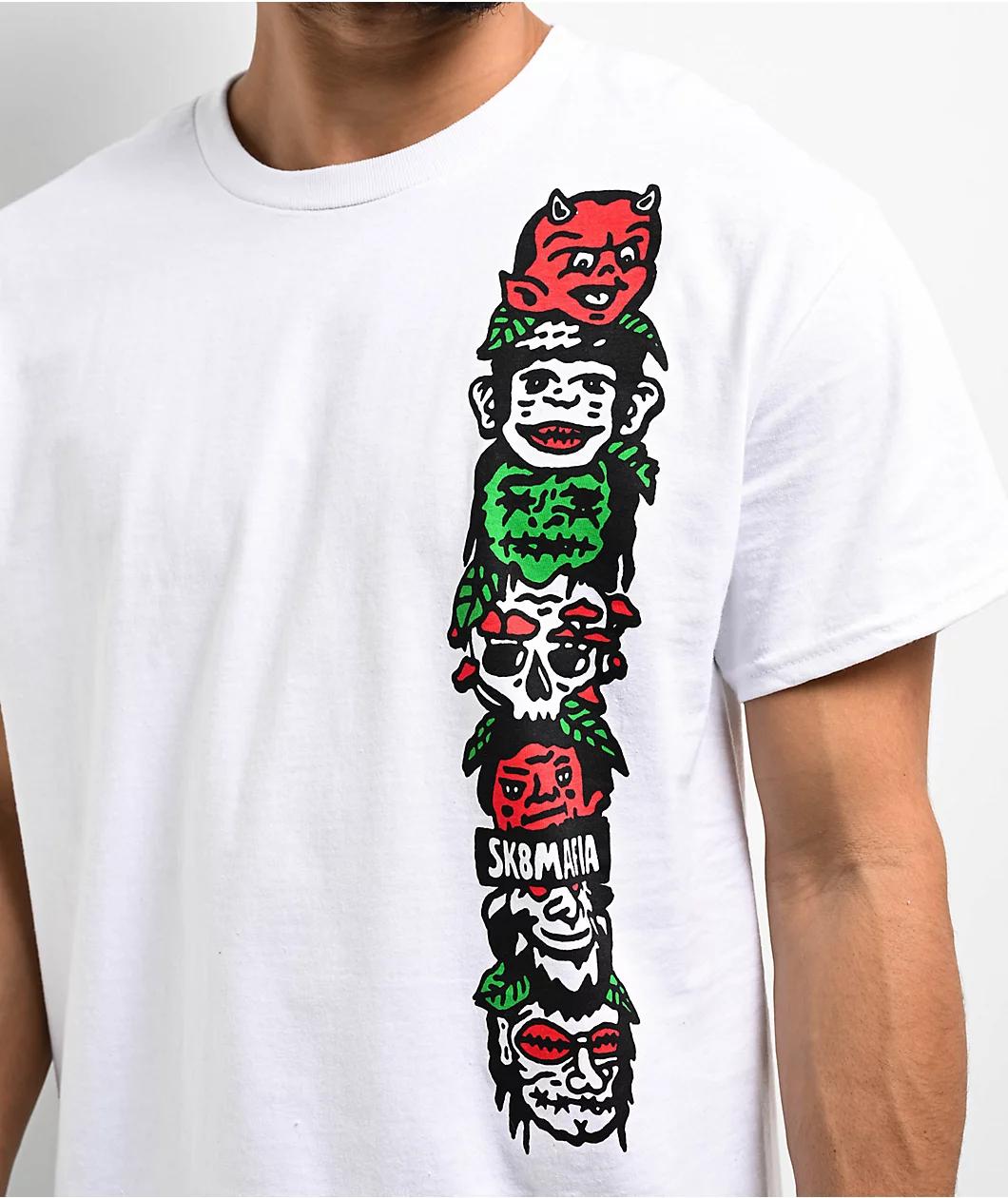 The Below Average t-shirt arrives from Sk8mafia in a sleek white cotton construction using a screened multicolor graphic on the front. Referencing the Amazon rainforest's creepy Jivaroan ritual of shrinking decapitated heads for trophy, trade, or rit