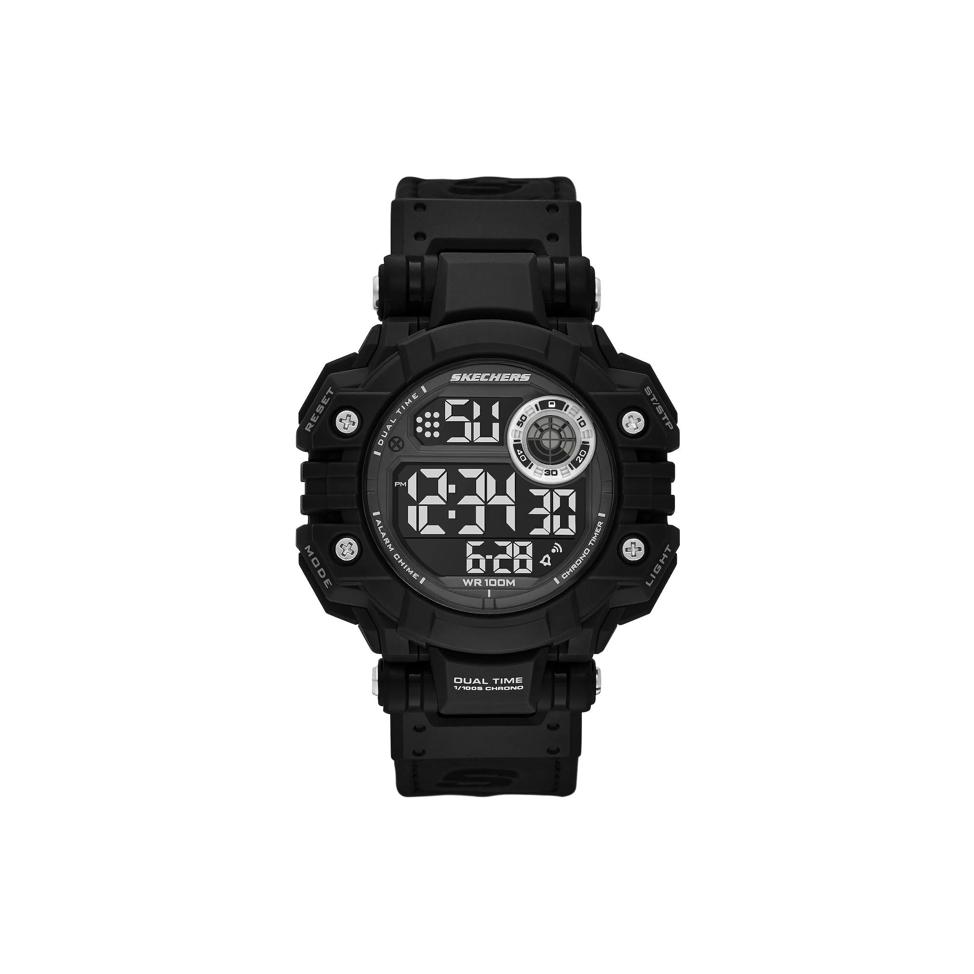 You'll love the ease and style of this Skechers Allenford Men's Digital Watch. Click on this JEWELRY & WATCHES GUIDE to learn about fit, styles, materials and more!You'll love the ease and style of this Skechers Allenford Men's Digital Watch. Click on this JEWELRY & WATCHES GUIDE to learn about fit, styles, materials and more!FEATURES Style: sport Calendar: date Daily alarm Dual time displayDISPLAY Face cover material: acrylic Illumination: EL backlightCASE Material: plastic Caseback material: stainless steel Screw-down caseback Diameter: 50 mmBAND Band type: strap Material: nylon Clasp: buckle Lug width: 22 mm Band length: 200 mm - 210 mmDETAILS Movement: quartz Power: battery Water resistance: 100 meters Packaging: boxed Manufacturer's 2-year limited warranty: For warranty information please click here Imported Size: 50MM. Color: Black. Gender: male. Age Group: adult.