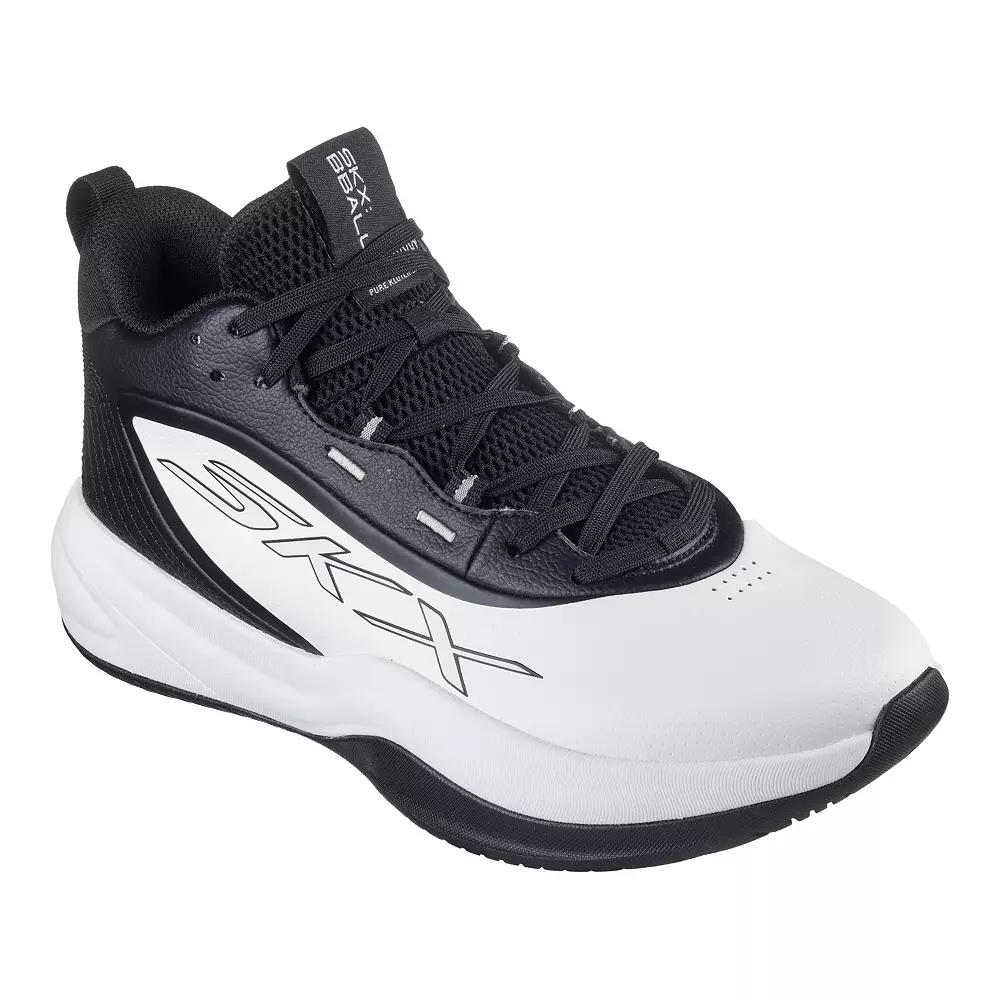 Whether driving to the hoop or locking down defense, you'll have the winning edge with these Skechers Basketball®: SKX League™ shoes.Click this FOOTWEAR GUIDE to find the perfect fit and more! Whether driving to the hoop or locking down defense, you'll have the winning edge with these Skechers Basketball®: SKX League™ shoes. Click this FOOTWEAR GUIDE to find the perfect fit and more! FEATURES Breathable perforated leather upper 5-GEN Foam midsole cushioning for responsive performance High-top lace-up with pull tab for easy on and off Heel lockdown and ankle support construction Resilient Skechers Move Foam insole for added comfort Durable, full rubber outsoleDETAILS Leather upper Polyester lining Foam Rubber outsole Round toe Lace-up Closure Foam footbed Spot clean Size: 9.5. Color: White Black. Gender: male. Age Group: adult.
