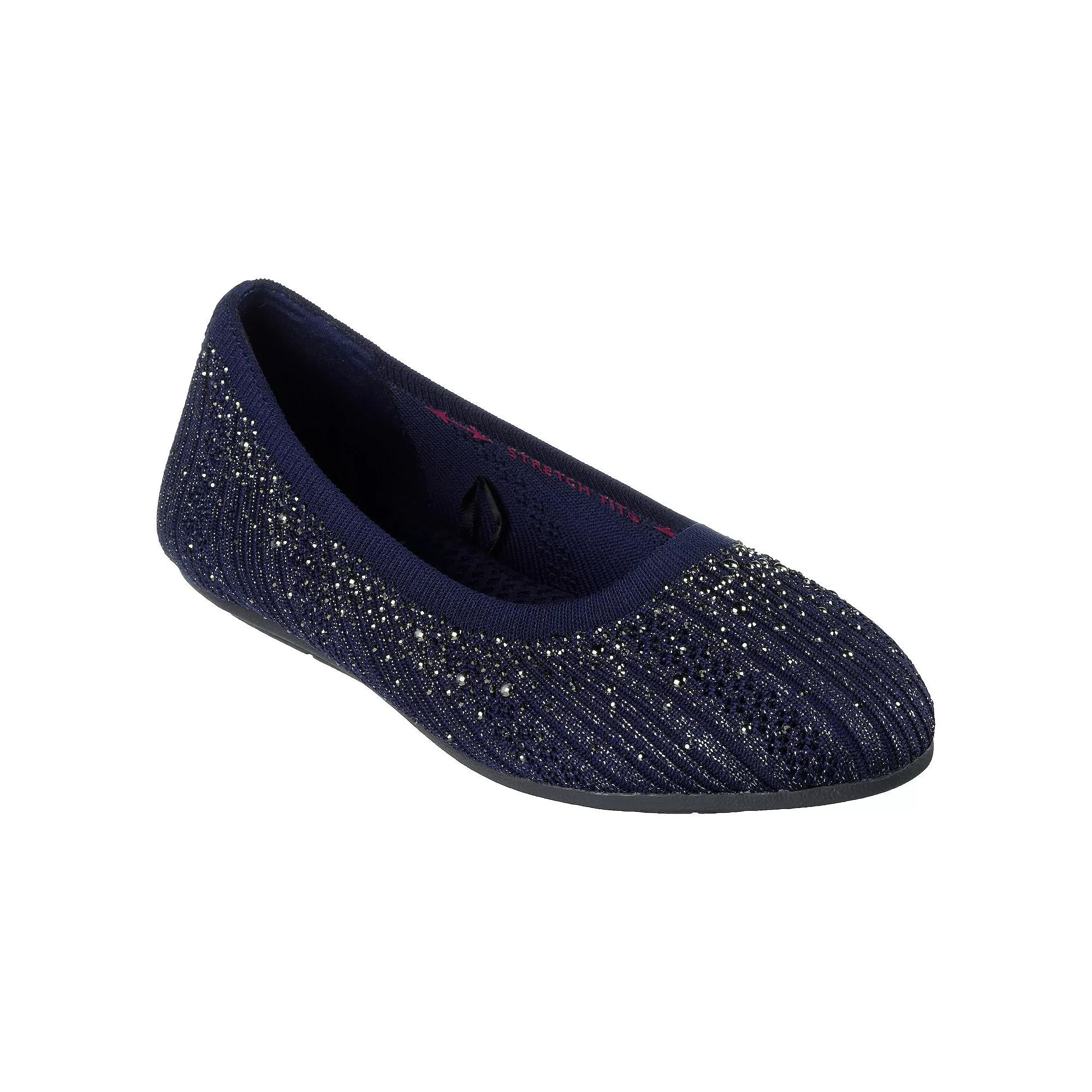 Keep it Earth friendly and stylish wearing Skechers Cleo® 2.0 Glitzy Daze flats. Click this FOOTWEAR GUIDE to find the perfect fit and more! - https://www.kohls.com/feature/shoesizeguide.jsp. FEATURES: Skimmer ballet flat with a woven geo knit fabric upper, Upper knitted fabric is made with 75% recycled polyester (excluding heel webbing), Skechers Air-Cooled Memory Foam® cushioned comfort insole, Stretch Fit® slip-on design for sock-like comfort, Crafted with 100% vegan materials, Flexible traction outsole. DETAILS: Fabric upper, Polyester lining, Rubber outsole, Almond toe, Slip-on, Memory foam footbed, Machine Washable: Wash on cold and air dry. Size: 5. Color: Navy. Gender: female. Age Group: adult. Material: OTHER MATERIAL.