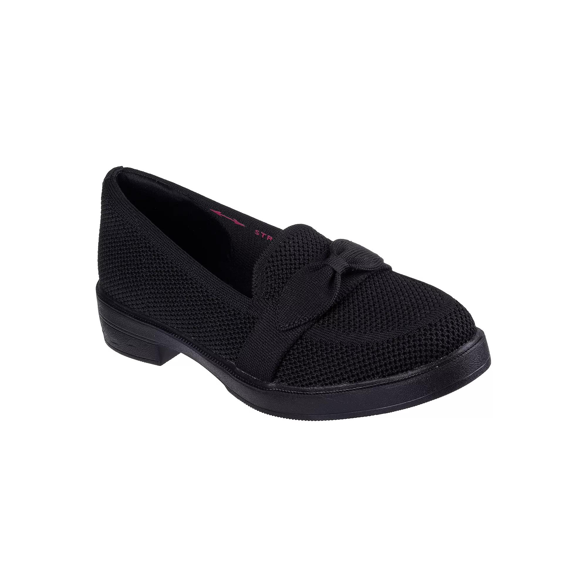 Versatile style mixes with stretchable comfort in these Skechers Cleo® Taylor shoes. Click this FOOTWEAR GUIDE to find the perfect fit and more! - https://www.kohls.com/feature/shoesizeguide.jsp. FEATURES: This product's upper is made with at least 20% recycled content by weight, which helps to reduce waste, Recycled Knit Vamp Bow Loafer, Skechers Air-Cooled Memory Foam cushioned comfort insole, Stretch Fit design for sock-like comfort, Flexible traction outsole, Crafted with 100% vegan materials, Our Planet Matters: Good for your feet. Good for the world. DETAILS: Knit upper, Polyester lining, Rubber outsole, Round toe, Slip-on, Memory foam footbed, 1.25-in. heel height, Machine Washable: Wash on cold and air dry. RESPONSIBLE Global Recycled Standard Certified, GRS:ITS-W18635-GRS-01591014, Global Recycled Standard certified polyester, Contains recycled materials. Size: 5. Color: Black. Gender: female. Age Group: adult. Material: OTHER MATERIAL.