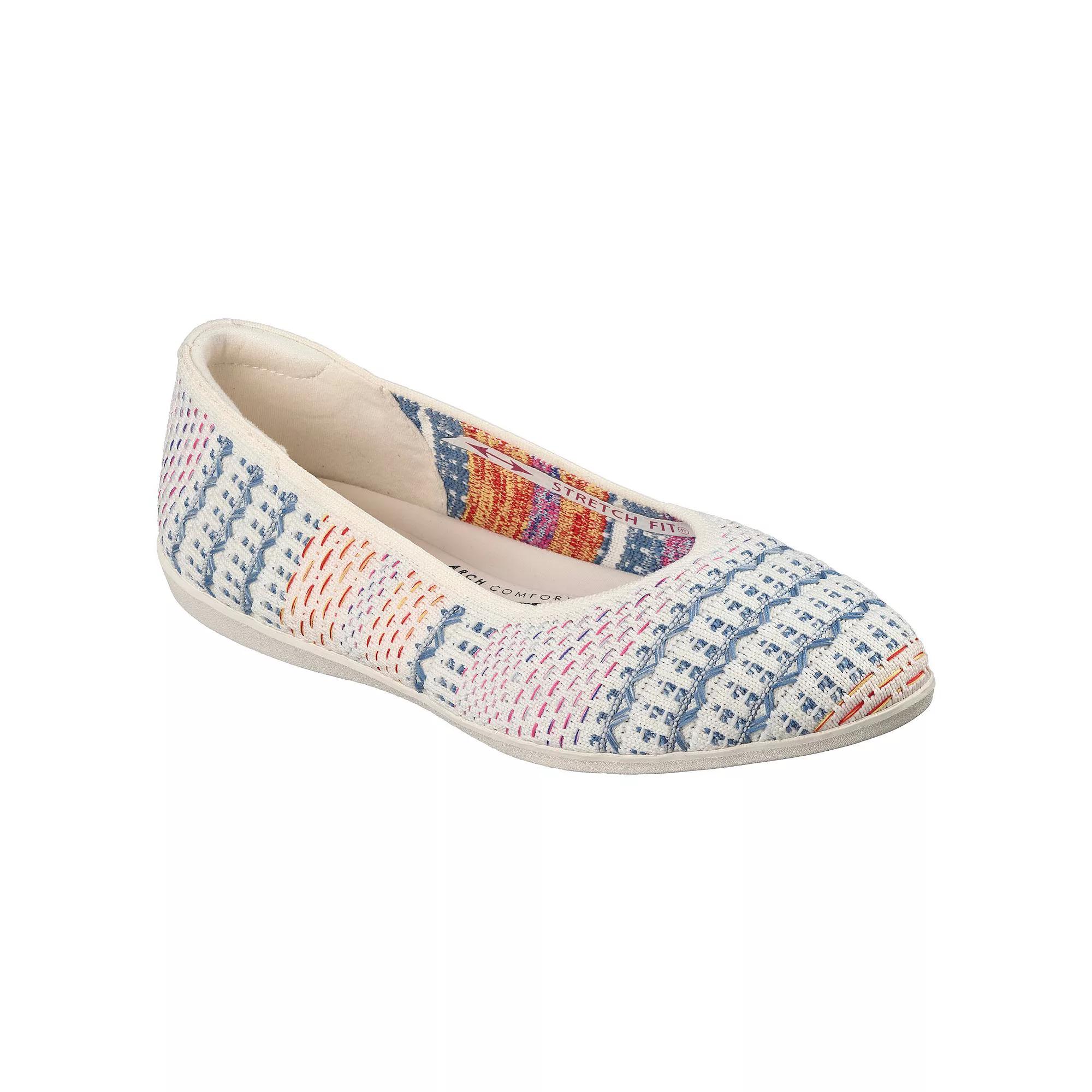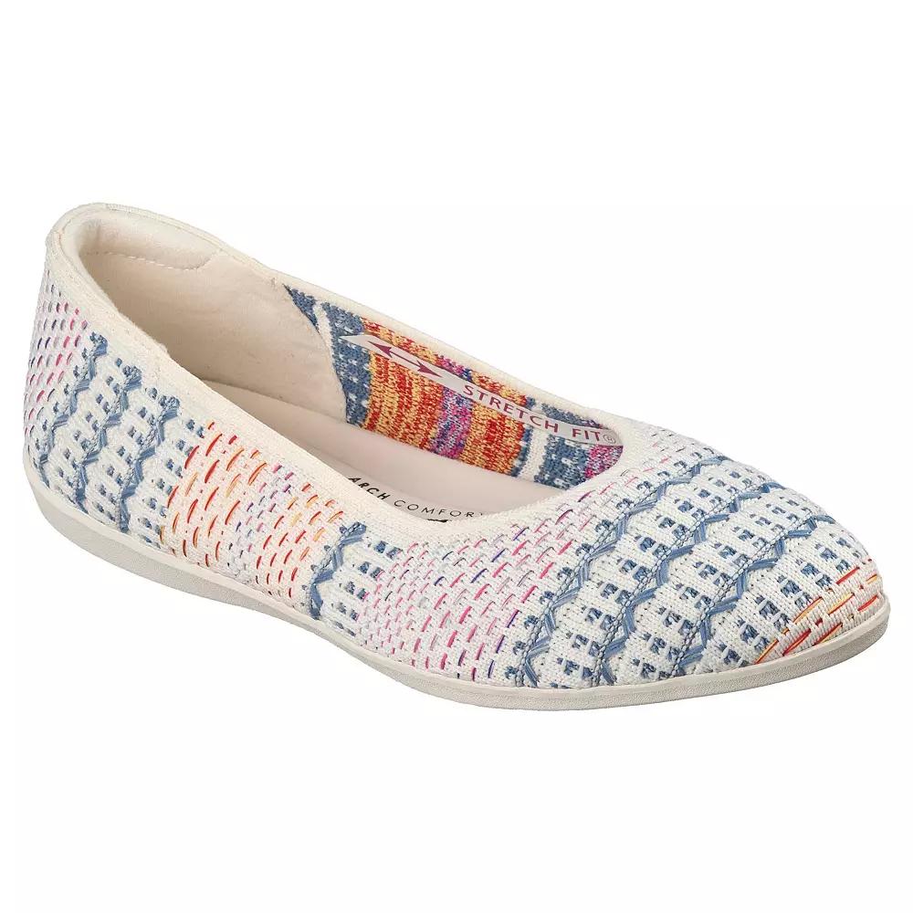 Step into delightful comfort with these Skechers flats that effortlessly blend style and ease. The fun multicolor pattern adds a pop of personality, while the cushioned insole and flexible outsole ensure you can dance through your day in pure bliss. Click this FOOTWEAR GUIDE to find the perfect fit and more! - https://www.kohls.com/feature/shoesizeguide.jsp. FEATURES: Recycled knit upper with multicolor pattern, Skimmer ballet flat design, Flexible traction outsole, Skechers Arch Comfort arch support, Skechers Air Cooled Memory Foam cushioned comfort insole, Stretch Fit design for sock-like comfort. MATERIAL & CARE: 76% recycled polyester, 22% nylon, 2% spandex upper, Rubber outsole, Polyester lining, Foam footbed, Machine wash, Spot clean. DETAILS: Slip-on closure, Treaded outsole, Almond toe, Imported. RESPONSIBLE Contains recycled polyester. Size: 8.5. Color: White Team. Gender: female. Age Group: adult. Material: OTHER MATERIAL.