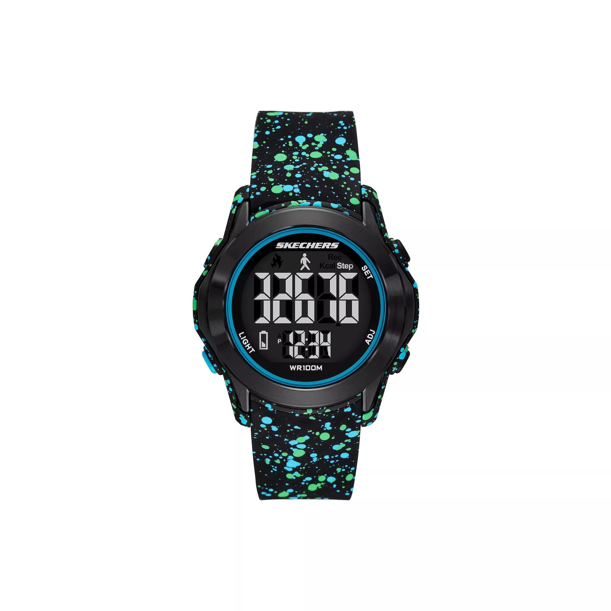 You'll love the ease and style of this Skechers Galloway Men's Pedometer Digital Watch. Click on this JEWELRY & WATCHES GUIDE to learn about fit, styles, materials and more!You'll love the ease and style of this Skechers Galloway Men's Pedometer Digital Watch. Click on this JEWELRY & WATCHES GUIDE to learn about fit, styles, materials and more!FEATURES Pedometer Style: sport Calendar: dateDISPLAY Face cover material: acrylic Illumination: EL backlightCASE Material: plastic Caseback material: stainless steel Screw-down caseback Diameter: 47 mmBAND Band type: strap Material: plastic Clasp: buckle Lug width: 22 mm Band length: 200 mm - 210 mmDETAILS Movement: quartz Power: battery Water resistance: 100 meters Packaging: boxed Manufacturer's 2-year limited warranty: For warranty information please click here Imported Size: 47MM. Color: Black Blue Team. Gender: male. Age Group: adult. Material: Rubber/Silicone.