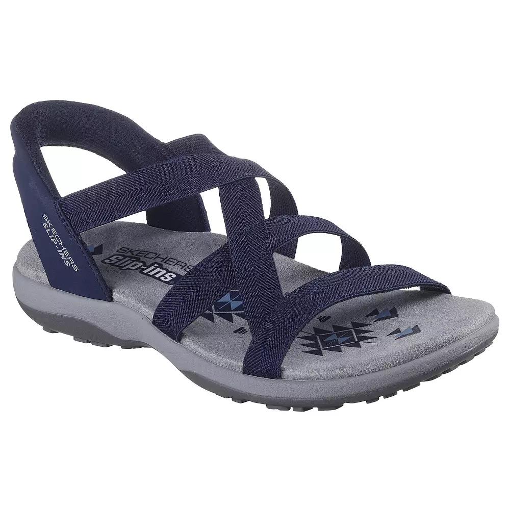 Enjoy sunny days in breezy comfort with these Skechers Hands Free Slip-ins: Reggae Slim - Stretch Flex sandals.Click this FOOTWEAR GUIDE to find the perfect fit and more! Enjoy sunny days in breezy comfort with these Skechers Hands Free Slip-ins: Reggae Slim - Stretch Flex sandals. Click this FOOTWEAR GUIDE to find the perfect fit and more! FEATURES Skechers Hands Free Slip-ins for an easy fit Exclusive Heel Pillow holds your foot securely in place Skechers contoured Memory Foam comfort footbed Supportive shock-absorbing Reggae Slim midsole Contoured cushioned comfort footbed Flexible rubber traction outsole Crafted with 100% vegan materialsDETAILS Synthetic, Stretch Knit upper Polyester, fabric lining Rubber outsole Open toe Slip-on closure Memory foam footbed 1.00-in. heel height Machine Washable: Wash on cold and air dry Color: Navy. Gender: female. Age Group: adult.