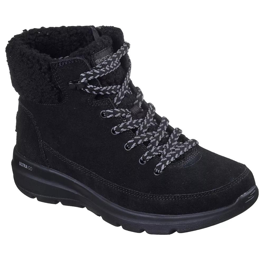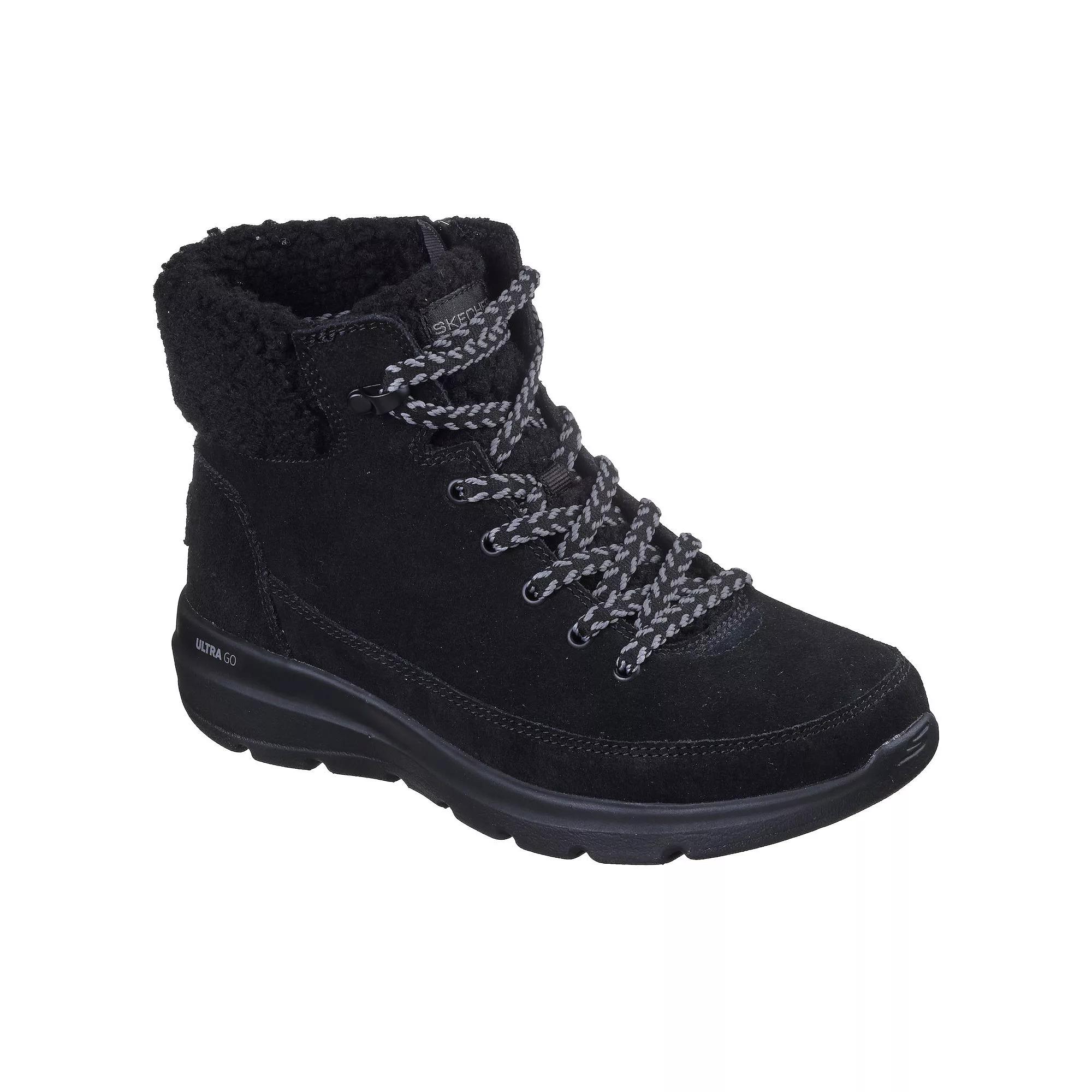 Defy the chill in style with these Skechers boots, featuring a chic color-blocked suede upper and cozy sherpa lining that warms every step. With an innovative slip-on design, flexible rubber outsole, and plush cushioning, you’ll enjoy comfort and confidence whether you’re heading out for errands or embracing a weekend adventure. Click this FOOTWEAR GUIDE to find the perfect fit and more! - https://www.kohls.com/feature/shoesizeguide.jsp. FEATURES: Color-blocked suede upper with sherpa lining for added warmth, Lightweight, responsive ULTRA GO cushioning, Skechers Air-Cooled Goga Mat breathable insole with high-rebound cushioning, Treated with 3M Scotchgard to resist water and stains, Flexible rubber traction outsole. DETAILS: Imported, Round toe, Lace-up and zipper closure, Heel height: 1.25 inches, Treaded outsole, Platform height: 0.25 inches. FIT & SIZE: Ankle boot shaft detail, 5-inch boot shaft height, 9-inch boot shaft circumference. MATERIAL & CARE: Contains faux fur, Suede upper, Foam footbed, Sherpa lining, Rubber outsole, Spot clean care. Size: 8.5. Color: Black. Gender: female. Age Group: adult. Material: OTHER MATERIAL.