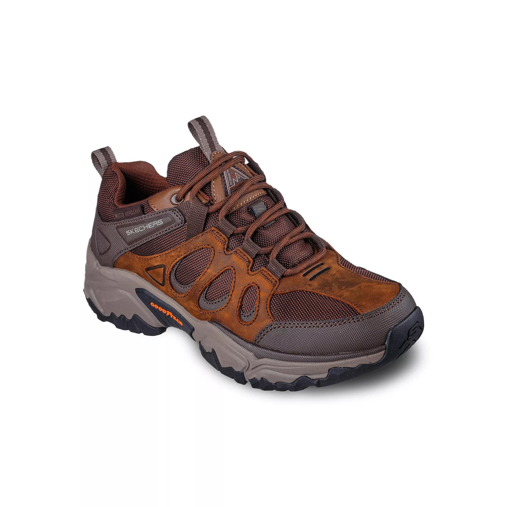 Skechers Terraform - Selvin Men's Hiking Shoe Check a new adventure off your wishlist in the Skechers Terraform - Selvin men's hiking Shoe . With a water-repellent treated leather & mesh upper featuring a Relaxed Fit for extra comfort, this lace-up Shoe is primed for the great outdoors. The Skechers Air-Cooled Memory Foam cushions every step while the outsole offers durable Goodyear Performance. Leather/mesh upper Lace-up closure Water-repellent Air-cooled memory foam insole Goodyear Performance outsole