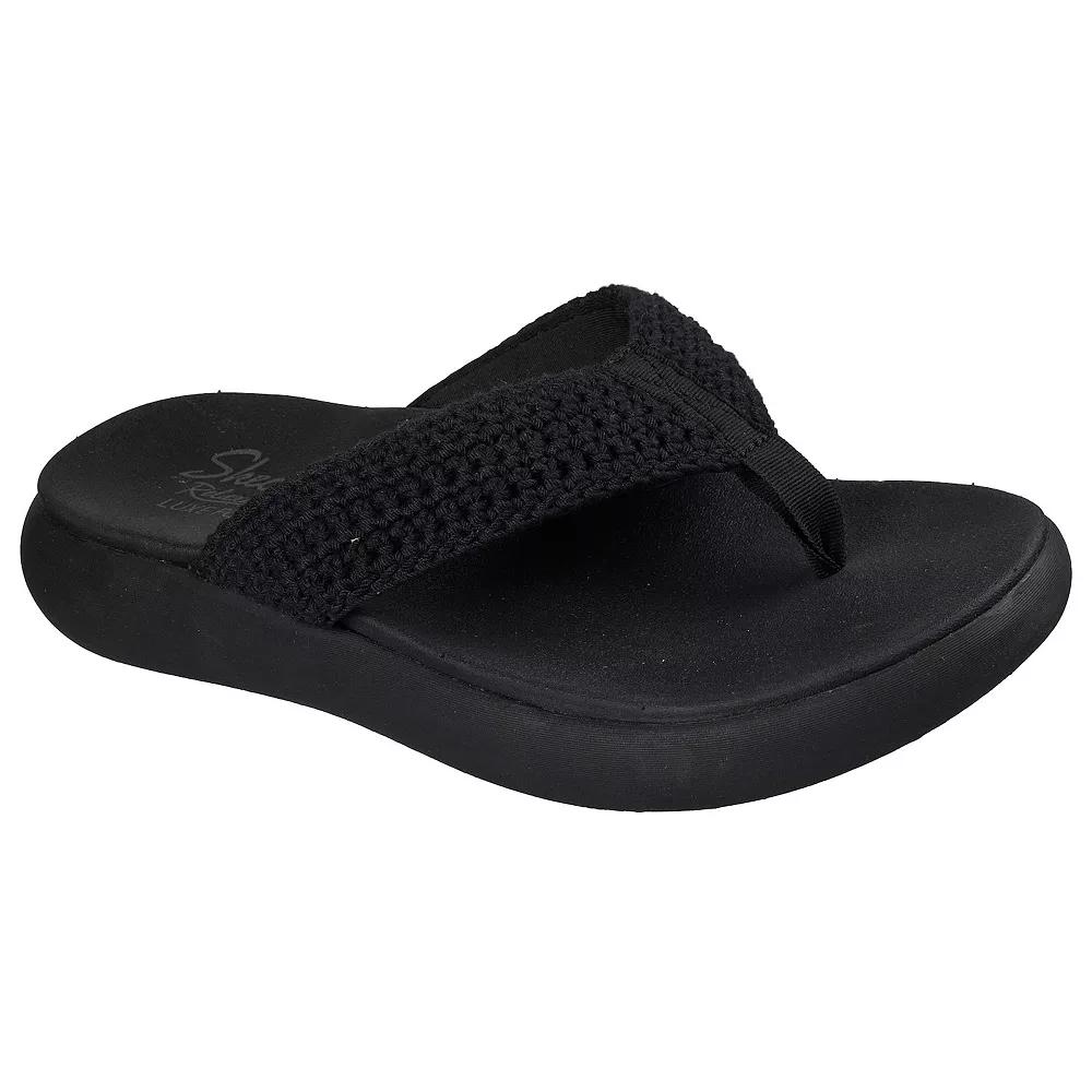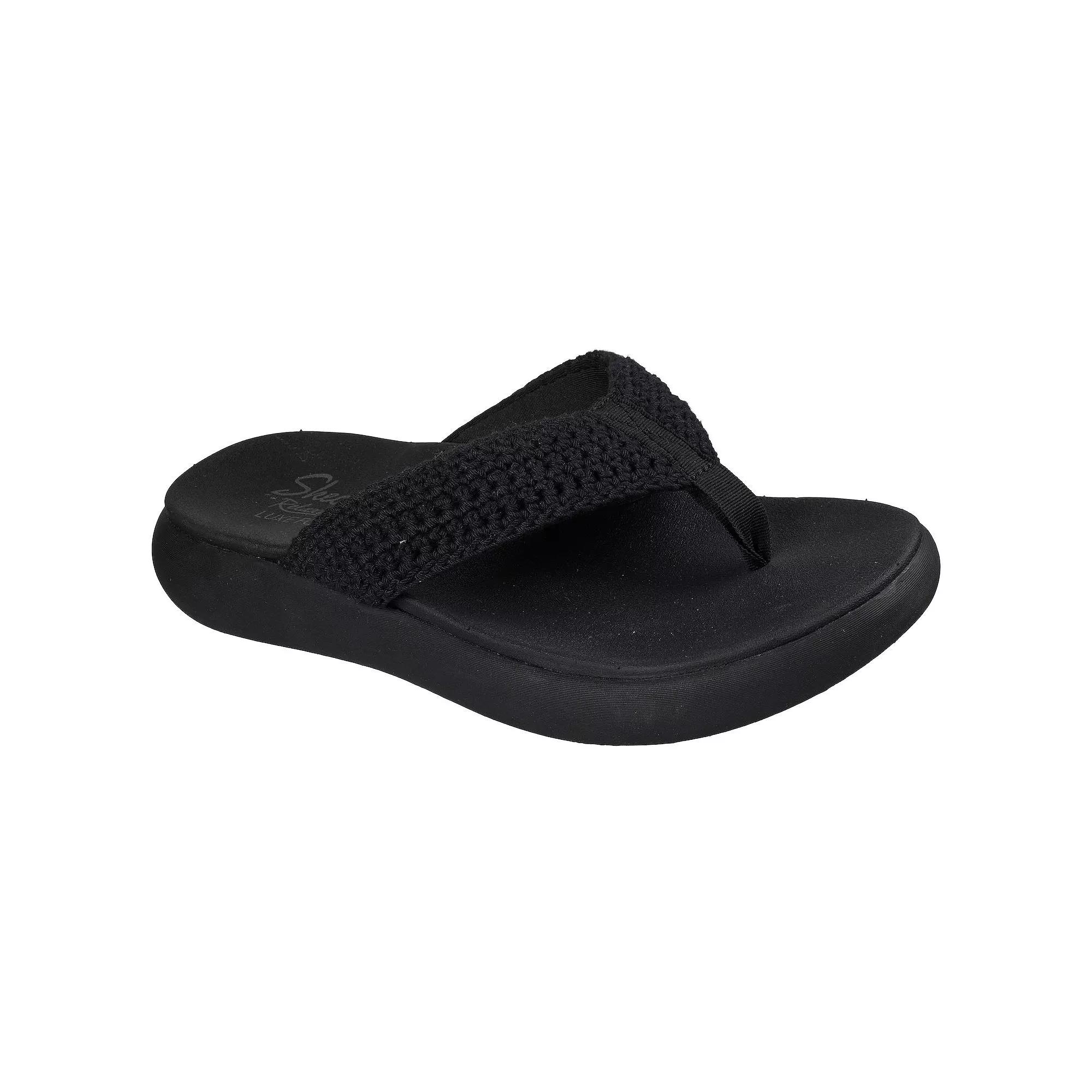 Step into effortless style and comfort with these Skechers sandals that feel like a gentle hug for your feet. Featuring a plush footbed and flexible outsole, they're perfect for weekend adventures or just taking it easy around the house while looking effortlessly chic. Click this FOOTWEAR GUIDE to find the perfect fit and more! - https://www.kohls.com/feature/shoesizeguide.jsp. FEATURES: Braided knit upper, Casual flip-flop sandal, Flexible traction outsole, Machine washable, Relaxed fit for a roomy and comfortable fit, Luxe foam cushioned comfort footbed, Podiatrist-certified arch support. MATERIAL & CARE: Knit upper, Rubber outsole, Polyester lining, Foam footbed, Machine wash, Spot clean. DETAILS: Slip-on closure, Treaded outsole, Open toe, 0.25-in. platform height, 1.25-in. heel height, Imported. Size: 9. Color: Black. Gender: female. Age Group: adult. Material: OTHER MATERIAL.