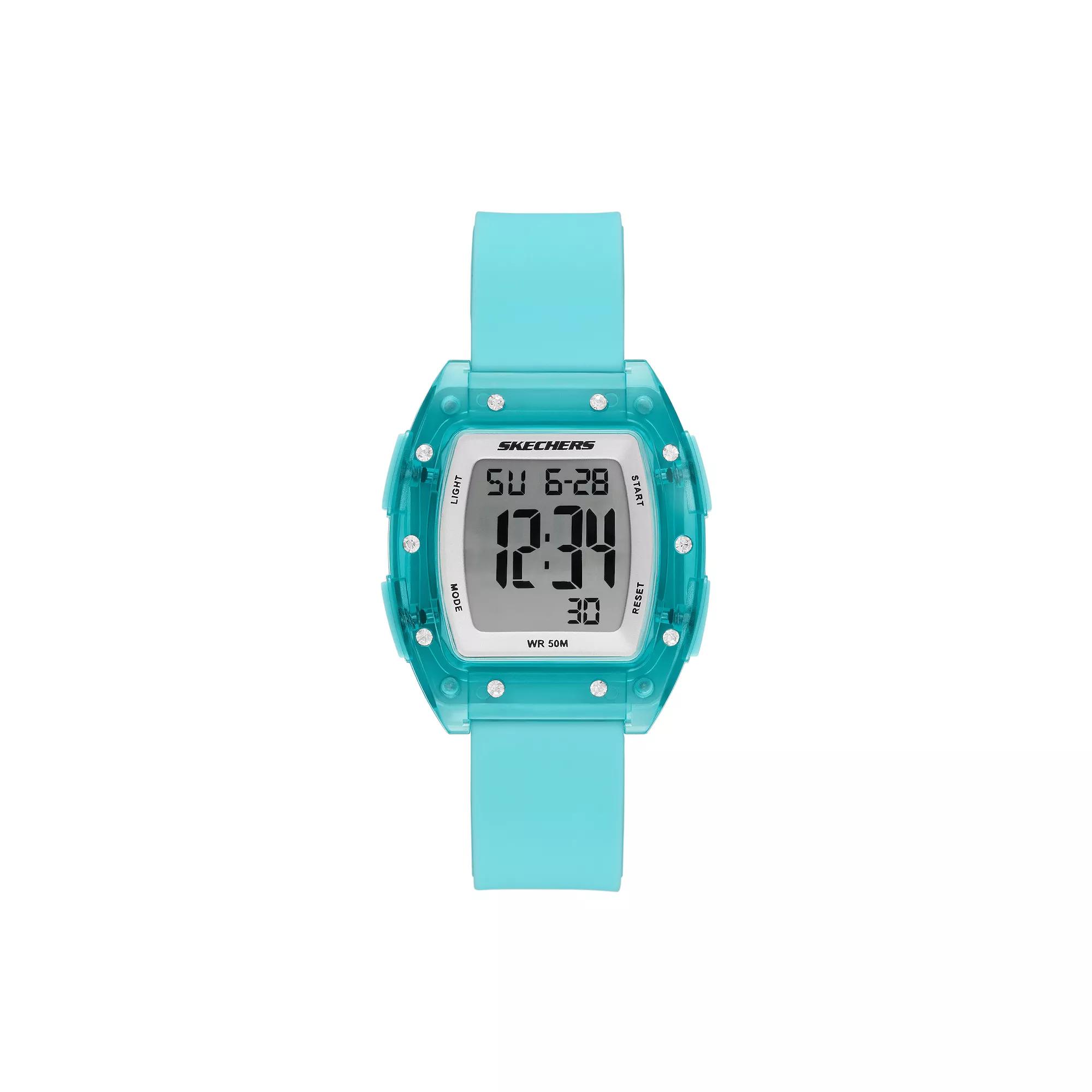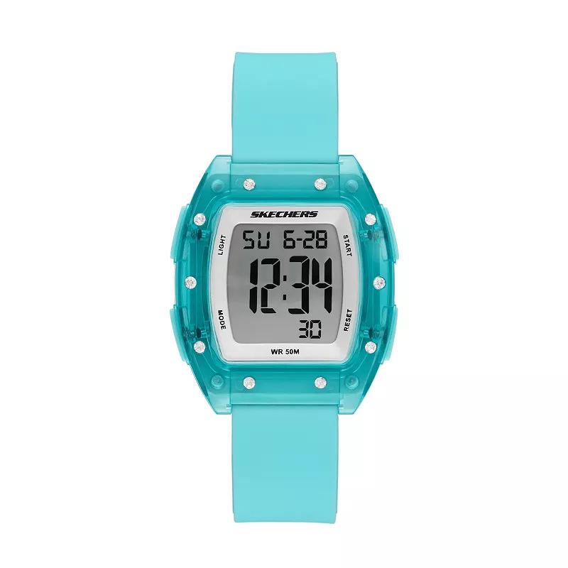 You'll love the ease and style of this Skechers Sawtelle Women's Silicone Digital Watch. Click on this JEWELRY & WATCHES GUIDE to learn about fit, styles, materials and more!You'll love the ease and style of this Skechers Sawtelle Women's Silicone Digital Watch. Click on this JEWELRY & WATCHES GUIDE to learn about fit, styles, materials and more!FEATURES Style: sport 60-second countdown timer Calendar: date Daily alarmDISPLAY Face cover material: acrylic Illumination: EL backlightCASE Material: plastic Caseback material: stainless steel Screw-down caseback Diameter: 37 mmBAND Band type: strap Material: silicone Clasp: buckle Lug width: 18 mm Band length: 180 mm - 190 mmDETAILS Movement: quartz Power: battery Water resistance: 50 meters Packaging: boxed Manufacturer's 2-year limited warranty: For warranty information please click here Imported Color: Blue. Gender: female. Age Group: adult. Material: Rubber/Silicone.