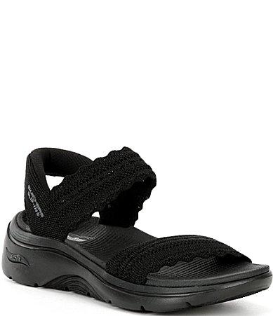 From Skechers, the Womens Hands Free Slip-Ins Arch Fit 2.0 Sasha Sandals feature:Soft stretch fabric upperSkechers logo detailSkechers Hands Free Slip-ins molded heel panelPatented Skechers Arch Fit insole: Designed to mold to your foot, reduce shock, and increase weight dispersionContoured Goga Mat comfort footbed helps mold to your foot to reduce shock and increase weight dispersionHeel Pillow holds your foot securely in placeFlexible traction rubber outsoleApprox. 1 heel heightMachine washableImported.