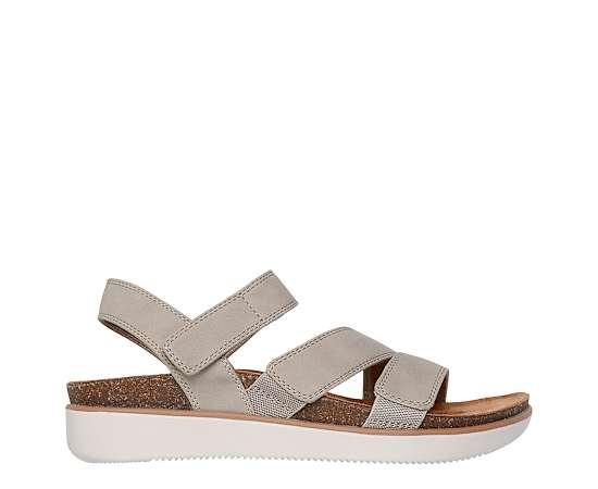Skechers Lifted Comfort Womens Sandal - Taupe Sensible design with modern comfort, the Skechers Lifted Comfort Sandal checks all your boxes. Featuring a faux leather upper , this vegan Sandal is ready for summer. The Skechers Memory Foam footbed cradles your foot and manages to add style. Synthetic upper Hook/loop closure Contoured footbed Cork trim Traction outsole w/ 3/4 heel