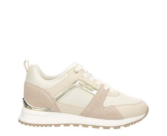 Skechers Street Runway Posh Gal Women's Sneaker - Natural/BlushAdd another classic with the Skechers Street Runway - Posh Gal Sneaker. Featuring a Fashion Fit upper with a metallic trim for extra flair, this Shoe also has heel. Every move is Cushioned by the Skechers Air-Cooled Memory Foam. Suede/synthetic upper Lace-up closure Padded collar /tongueAir-Cooled Memory Foam insoleTraction outsole