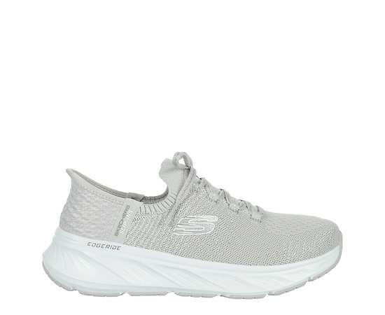 Skechers Slip-Ins Edgeride Women's Running Shoe - GreyHit your goals in footwear that are good for your feet and the world in the Skechers Slip-ins Relaxed Fit : Edgeride - Starlight running Shoe. With a metallic upper that's machine washable featuring 20% recycled materials, these vegan Shoeshave an exclusive Heel Pillowfor a secure fit. So comfy with a Skechers Air-Cooled Memory Foam insole and well- Cushioned midsole, while the outsole offers flexible traction. Stretch knit upper Slip-in w/ stretch lacesMachine washableAir-Cooled Memory Foam insoleTraction outsole