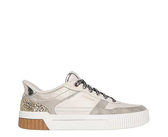 Skechers Court Slip-ins Jade Radiant Roar Women's Sneaker - Natural Safari style gets the glamour treatment in the Slip-ins: Jade - Radiant Roar Sneaker from Skechers. Featuring a suede & duraleather upper with a secure exclusive Heel Pillowâ¢, this Skechers Hands Free Slip-in also has a glittered heel panel and animal print laces. The Skechers Air-Cooled Memory Foam insole cushions every stride, while the outsole offers flexible traction. Suede/synthetic upper Slip-in Metallic accents Air-Cooled Memory Foam insole Traction outsole