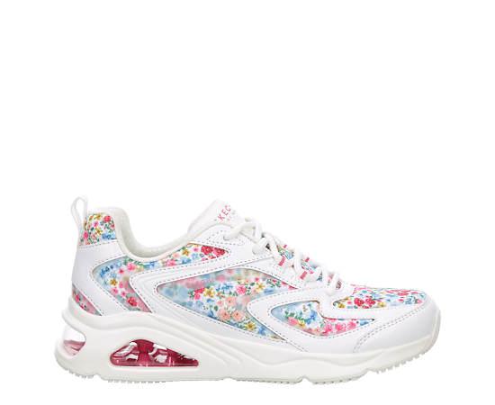 Skechers Street Tres-Air Uno Botanical Bliss Womens Sneaker - White/Multicolor Fashion gets its flowers with Skechers Street Tres-Air Uno - Botanical Bliss womens Sneaker. Featuring a floral printed mesh upper with duraleather overlays, this lace-up Sneaker tells a colorful story. The Skechers Air-Cooled Memory Foam insole and visible Skech-Air airBag midsole supportively comforts your foot, while the outsole provides flexible traction. Mesh/synthetic upper Lace-up closure Air-Cooled Memory Foam insole Skech-Air visible airBag midsole Traction outsole
