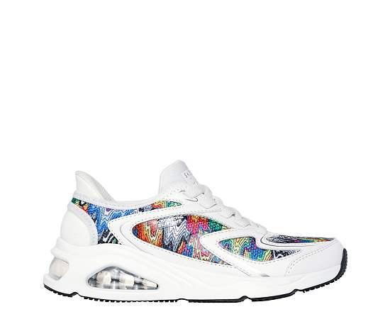Skechers Street Tres Air Uno Iris Drip Women's Sneaker - White/RainbowNever forget to Color Your World in the Skechers Street x Jen Stark: Tres-Air Uno - Iris Drip Sneaker. Featuring a signature printed mesh upper with synthetic overlays, this Shoe is a vibrant accessory. The Skechers Air-Cooled Memory Foam and visible Skech-Air airBag midsole supportively comforts, while the outsole provides flexible traction. Mesh/synthetic upper Lace-up closure Air-Cooled Memory Foam insoleSkech-Air midsoleTraction outsole